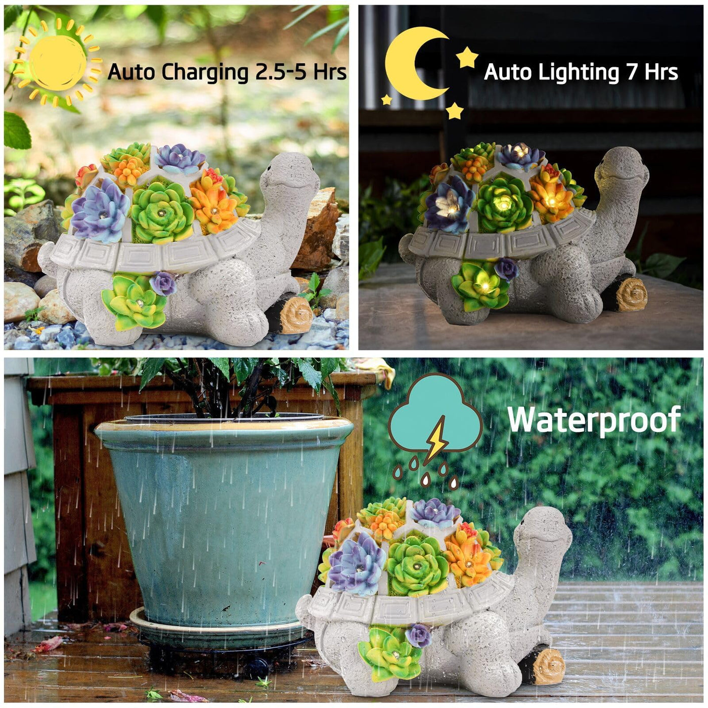 Bilolly Gifts For Women, Solar Lights For Outside Garden With Succulent And 8 Led Lights And Stump, Lawn Decor Tortoise Statue F