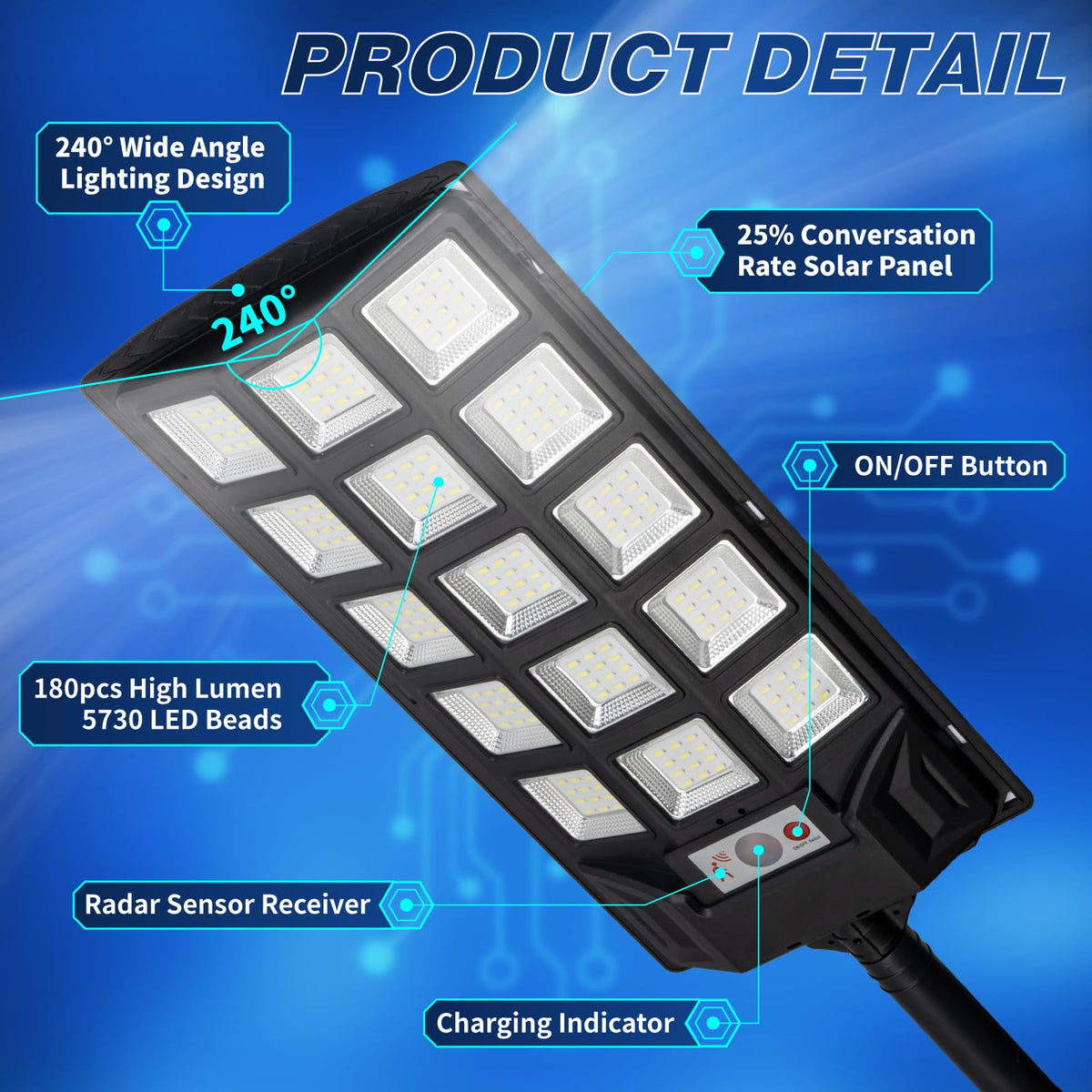 BINGLUX Solar Street Lights Outdoor Waterproof are perfect for squares, parks, gardens, courtyards, streets, corridors, passages, campus, farm, surrounding security, etc..
