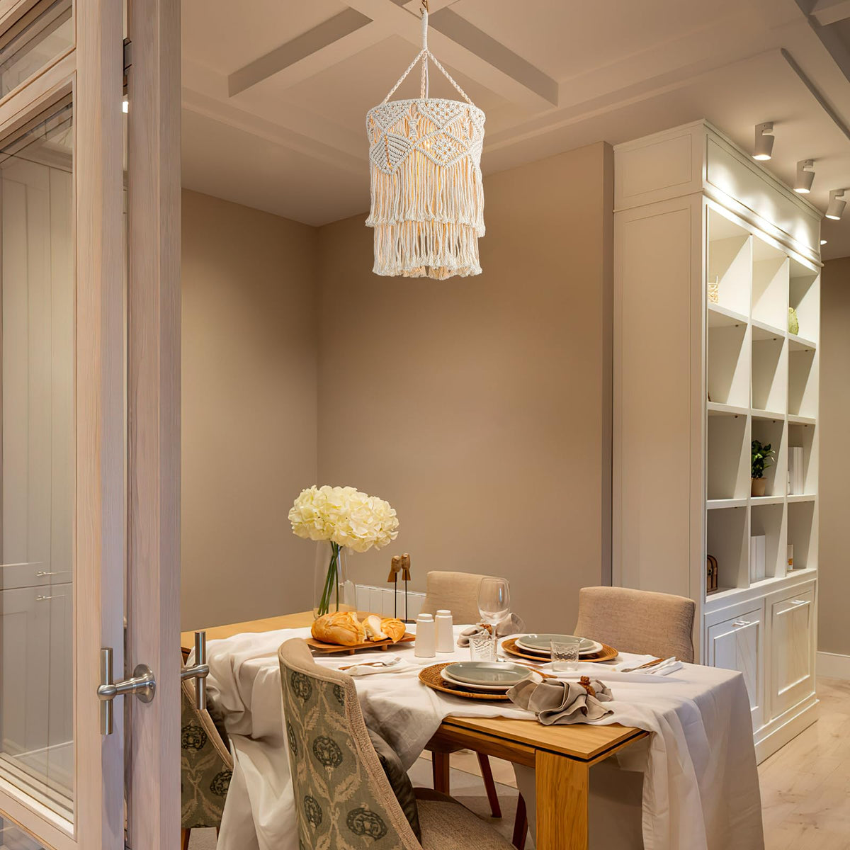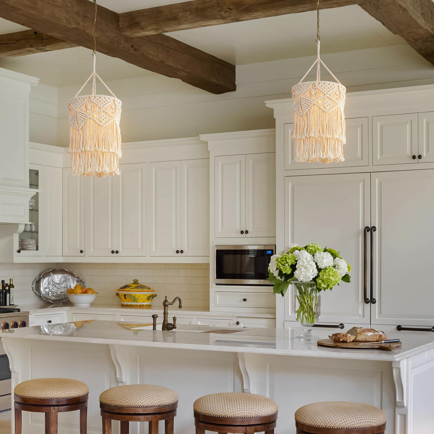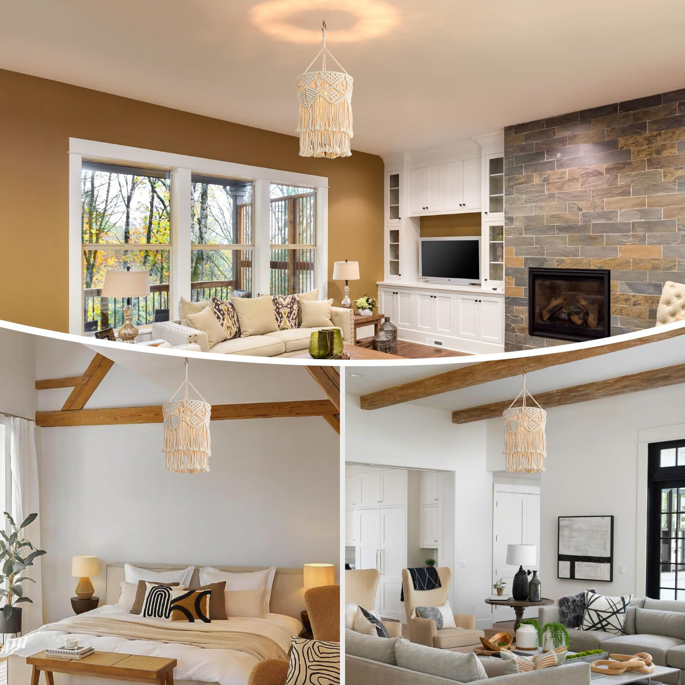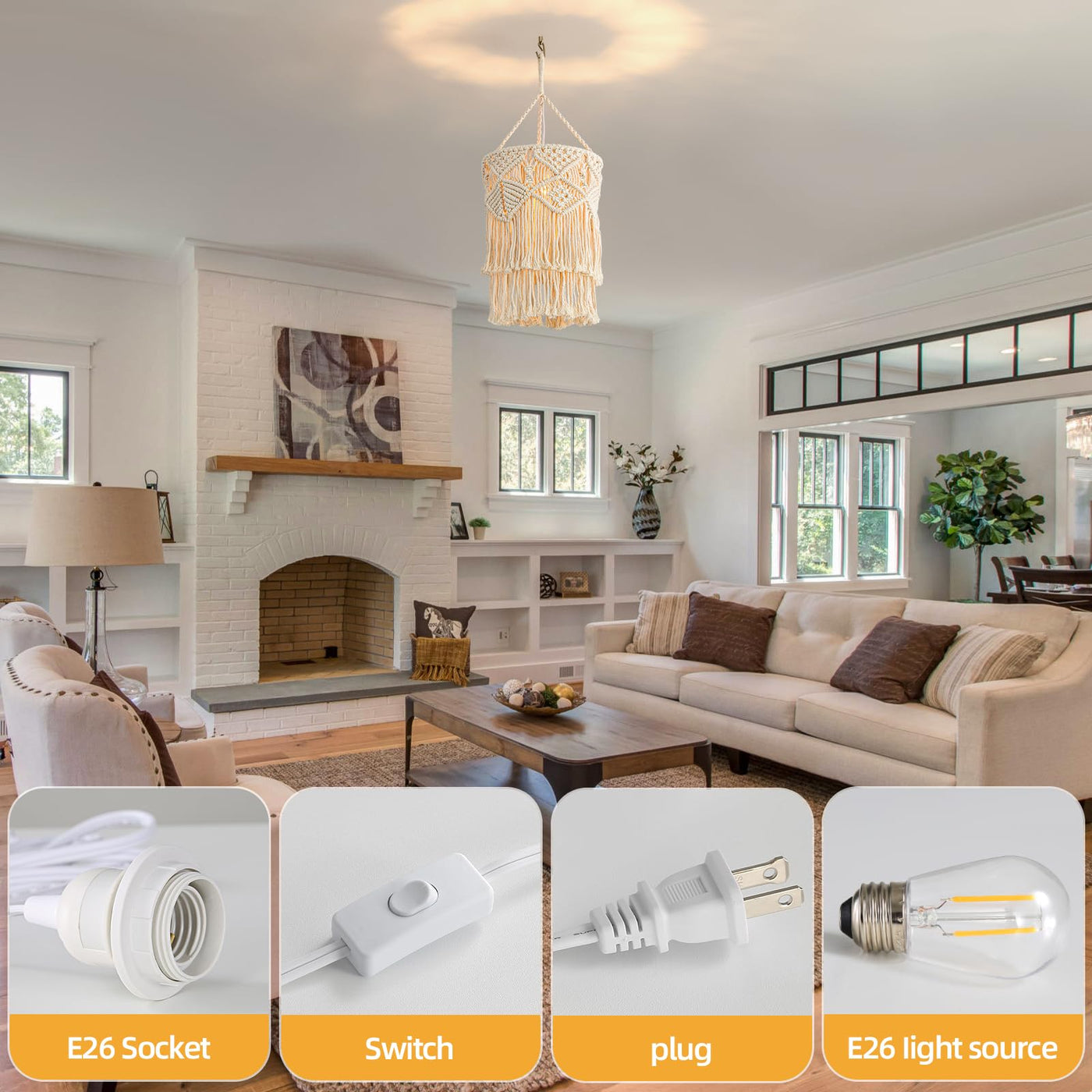 This Gorgeous Macrame Pendant Lights Is Handmade With Natural Cotton Rope And By Unique Pattern, Fresh Design Is An Elegant Update For Traditional And Modern Homes Alike,Is A Perfect Boho Hanging Lamp For Any Space. The Largest Ring Diameter Is 12.2 Inches, The Height From The Top To Longest Tassel Is 25-26 Inches, Cord Length Is 137.7 Inches (Adjustable). Compatible With A Variety Of Incandescent,Saving Energy Lamp, Led, Edison Bulb. (Bulbs Not Included) Hanging Pendant Light With Plug In Cord Install Is So Easy, Tighten The Light Socket And Lamp Shade And Install Your Own Light Bulb,Just Hang It Directly Anywhere You Like,The Lampshade Can Block The Strong Light, Avoid The Eye Discomfort Of Children And The Elderly, And Adjust The Indoor Light Source. This Boho Hanging Lamp Shade Are Suitable For Bedroom?Living Room.Children'S Bedrooms,Tudies,Dining Rooms,Offices,Corridors,Entrance,Halls,It Will Be A Beautiful And Practical Gift For Your Family Or Friends. This Is A Bohemian Style Home Decoration Lamp,It Emits A Smooth And Well-Proportioned Light,And It Casts On The Wall Is Very Beautiful ! Warm Light, It Will Give You A Relaxing Mood And Create Comfortable Space For Any Room, Helping You Fall Asleep Faster And Happier,Which Brings You Warm Light In A Quiet Sleep Night.Not Dimmable, Toun On/Off