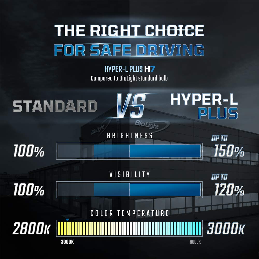 BIOLIGHT KM H7 Hyper-L Plus 150% brighter Fog Beam Replacement Headlight Bulbs, 2 pack