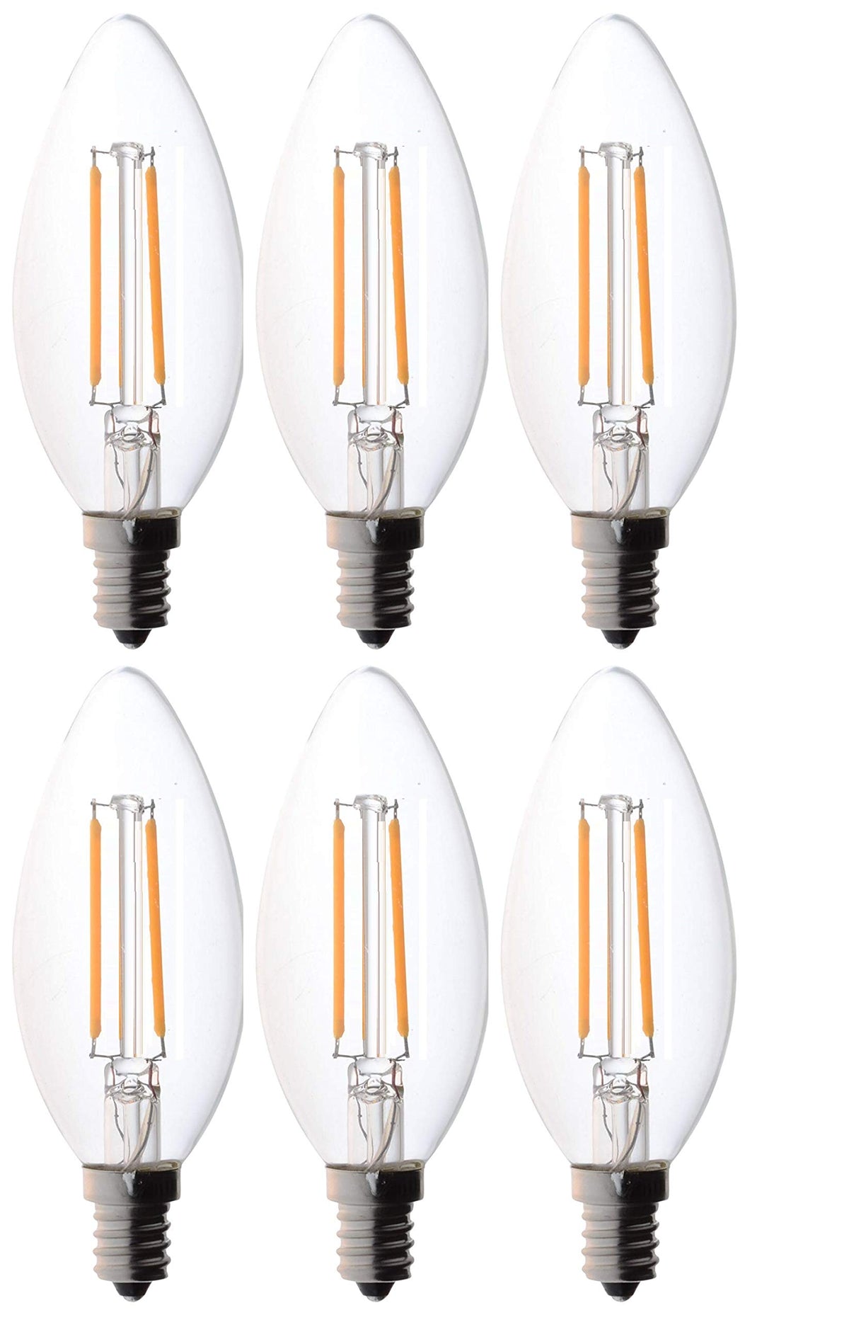 Bioluz Led 4W Filament Candelabra Bulb, E12 Base High Efficiency Led Candle Bulbs, Ul Listed, Pack Of 6