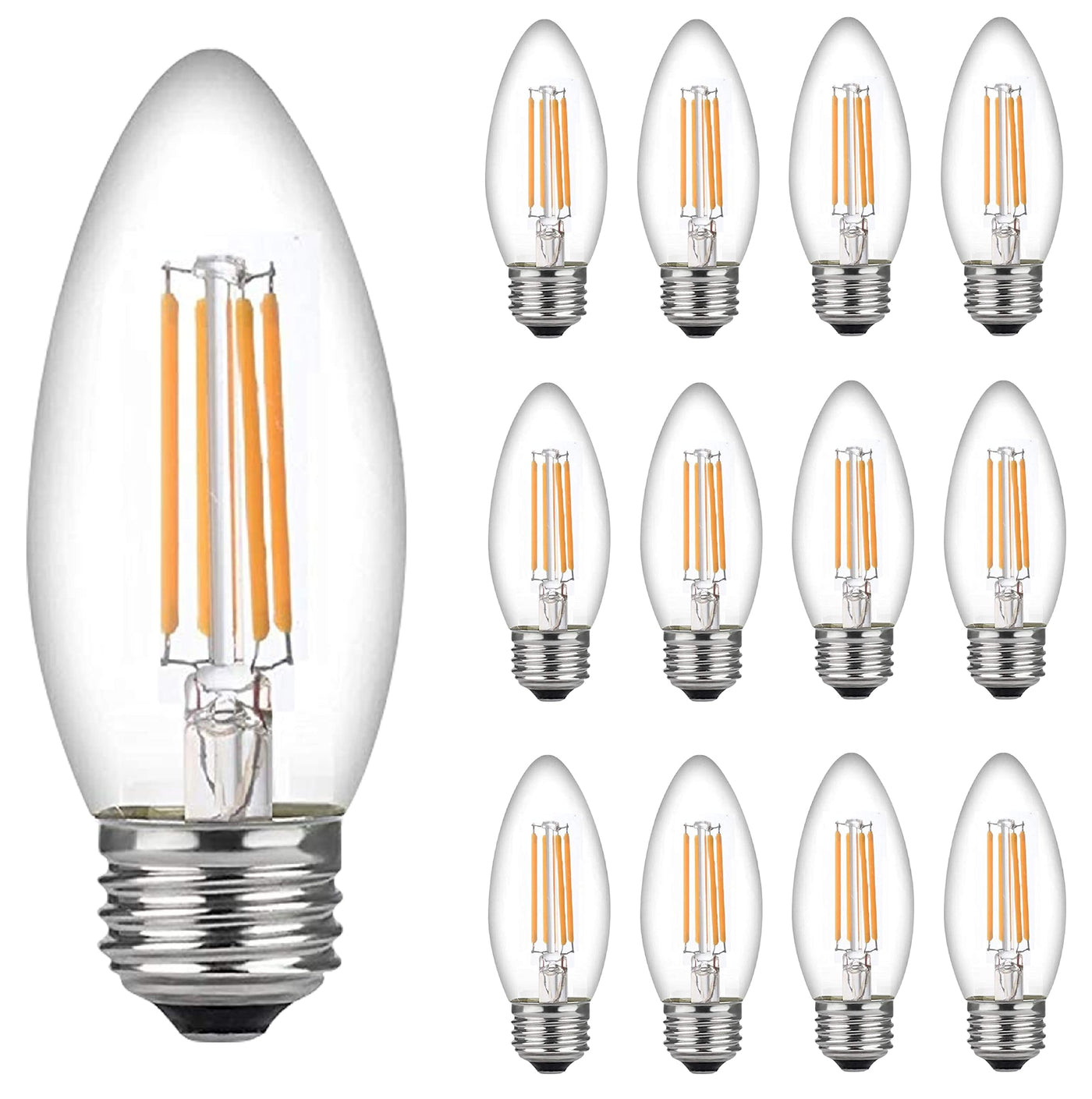 Bioluz LED 60W Candelabra Bulbs, Dimmable Filament, Soft White 3000K, E26 Base, 12-Pack