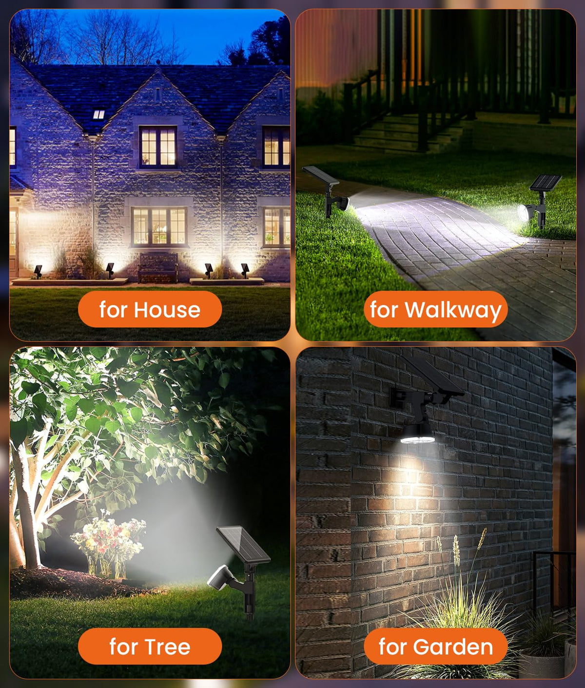 Q: Can the solar panels on the BITPOTT Solar Spot Lights be adjusted?A: Yes, the solar panels of the BITPOTT Solar Spot Lights can be rotated 360° and adjusted 180° up and down, enabling you to capture sunlight effectively throughout the year and illuminate hard-to-reach areas.