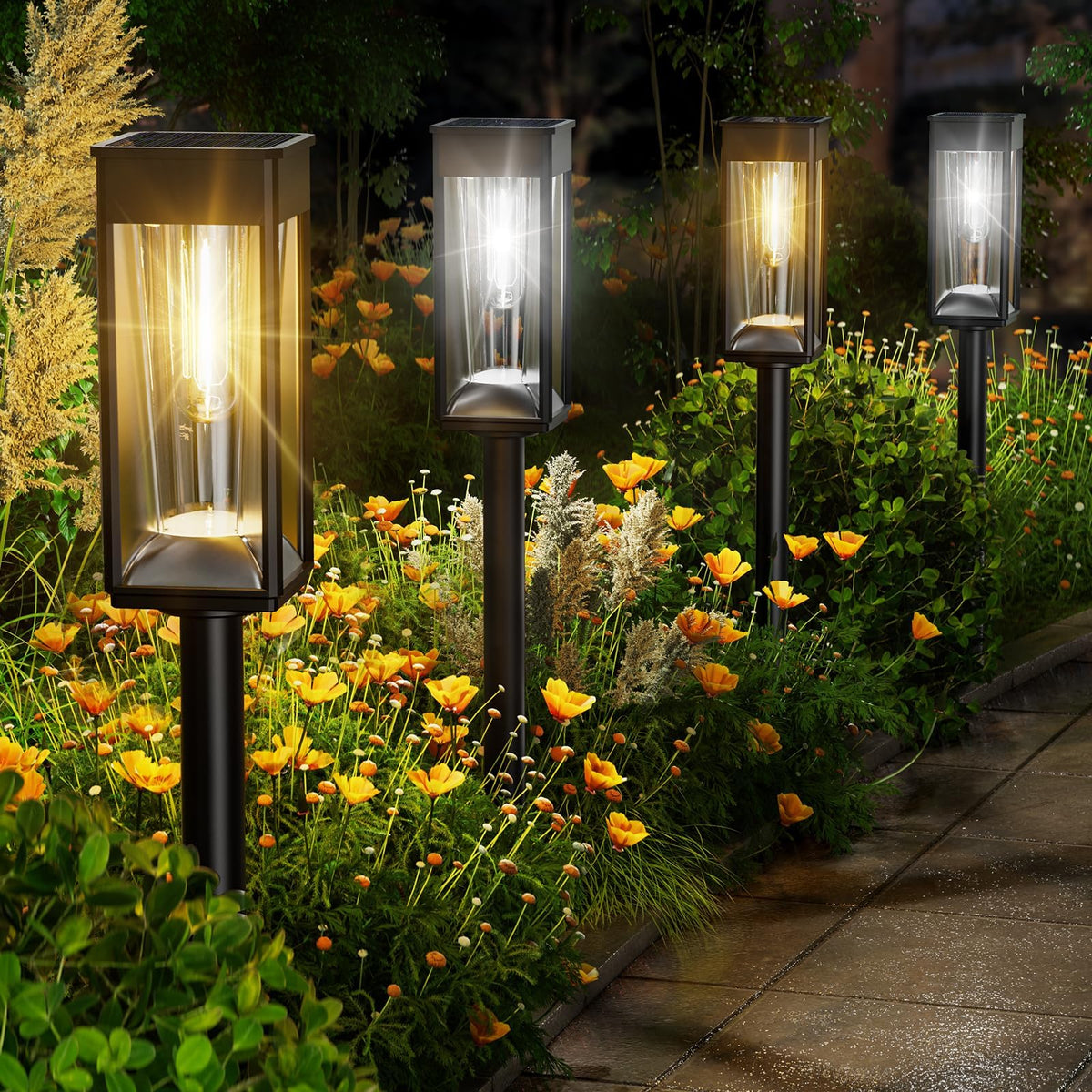 Bitpott Warm&Cool White Solar Lights Outdoor 6 Pack, Bright Solar Pathway Lights Outdoor Waterproof Ip65 Solar Walkway Lights Ou