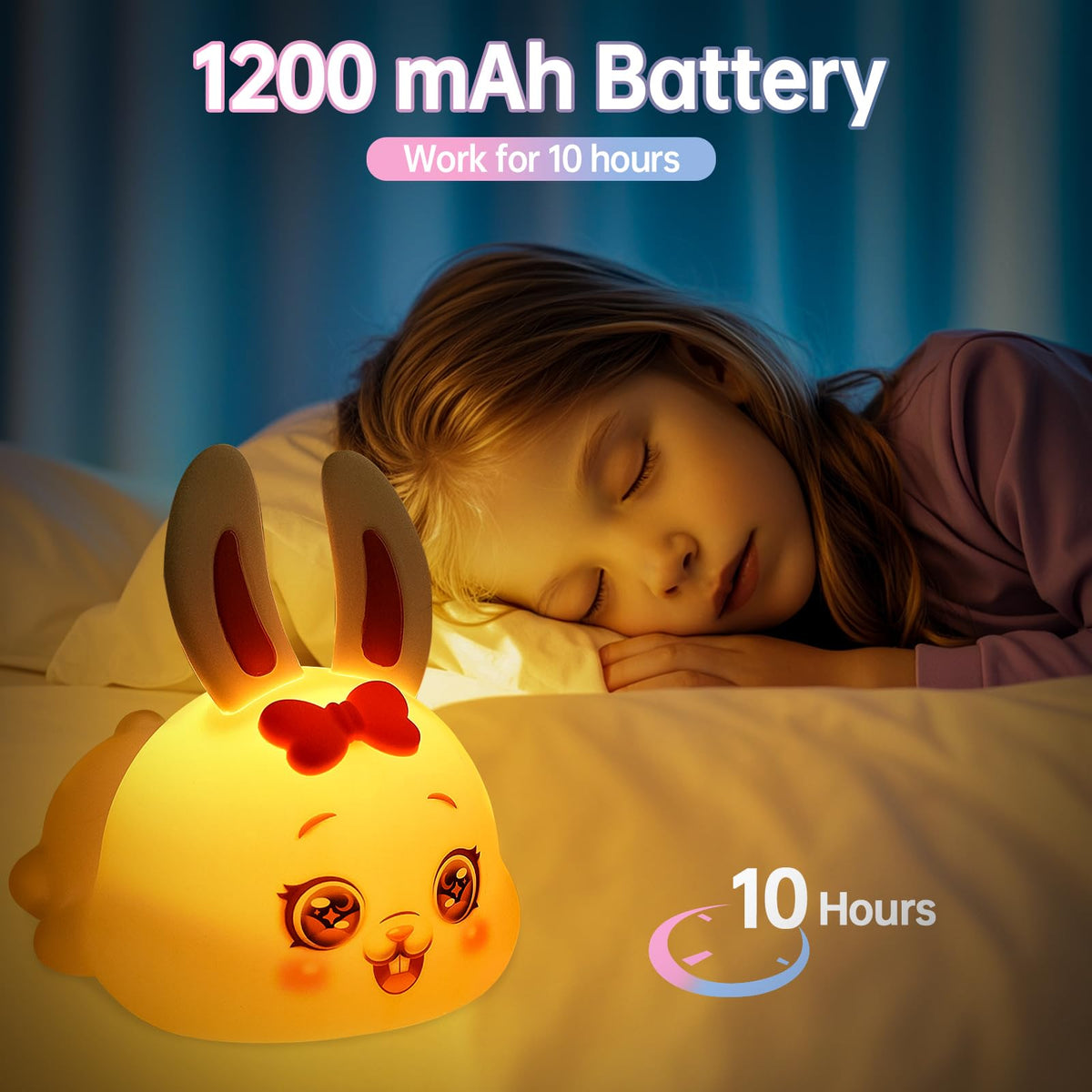 BIUTYVOICE Bunny Night Light for Kids, 7 Colors LED Nightlight for Bedroom, Cute Rabbit Nursery Night Lamp for Girls Boys, Cute