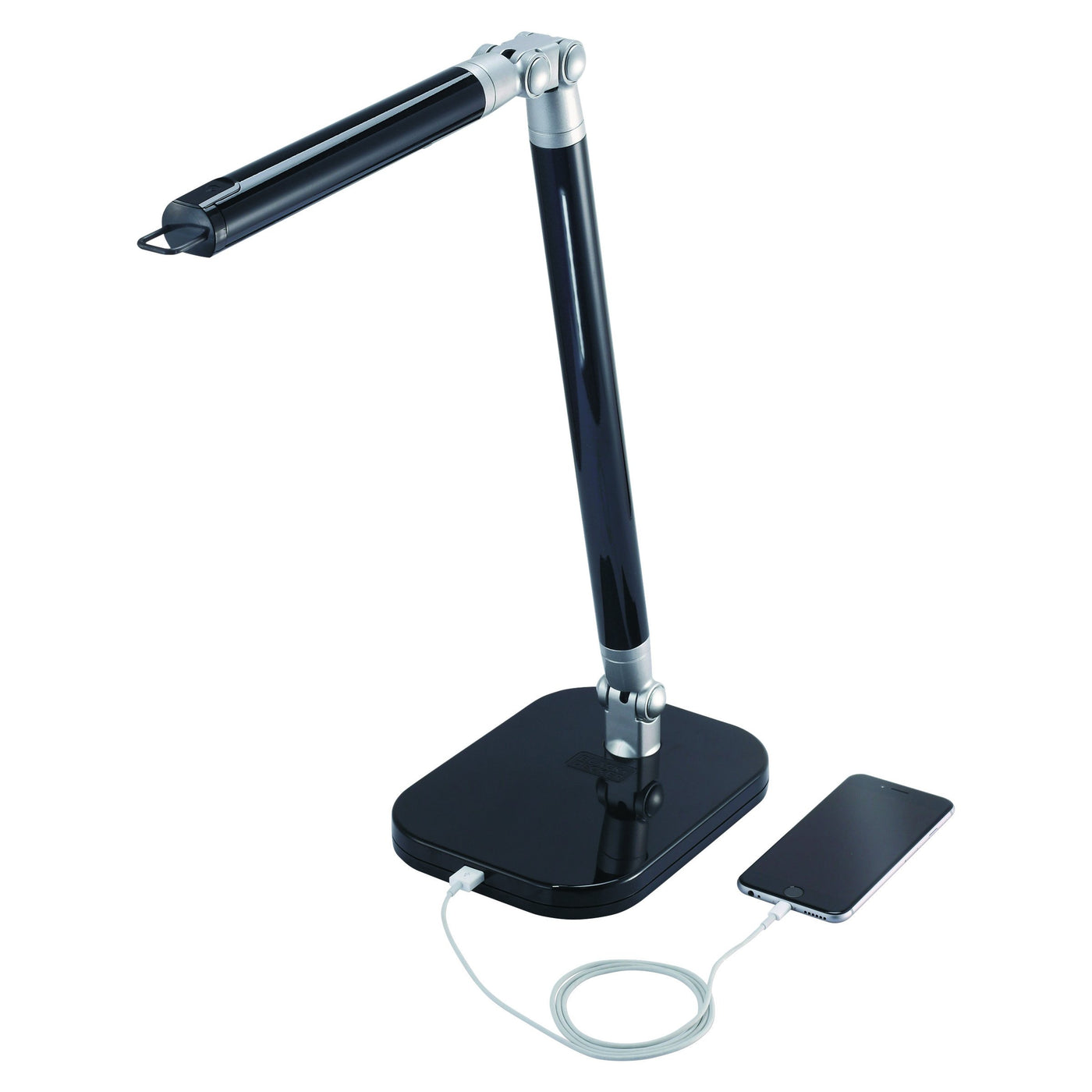 This adjustable LED desk lamp seamlessly combines durable construction, modern design, and high powered LED's to make an office light unlike any other. Designed to replicate natural daylight, this desk light reduces eye strain and increases productivity. A USB port allows you to charge your phone and other devices effortlessly. A dimness setting allows you to choose the right brightness level for you. Plus, the LED desk lamp's adjustable bar style allows you to position the light in a way that perfectly suites you. Invest in a quality task light for your office with the Exalt by BLACK+DECKER PureOptics. Multi-mount connector ability for versatility. 85 Color Rendering Index (CRI) for accurate, vivid color rendering across the visible spectrum. 5,000 Kelvin Color Temperature brings bright, noon-time lighting indoors. Produces bright 306 lumen output at a low, energy-efficient 5 watts.