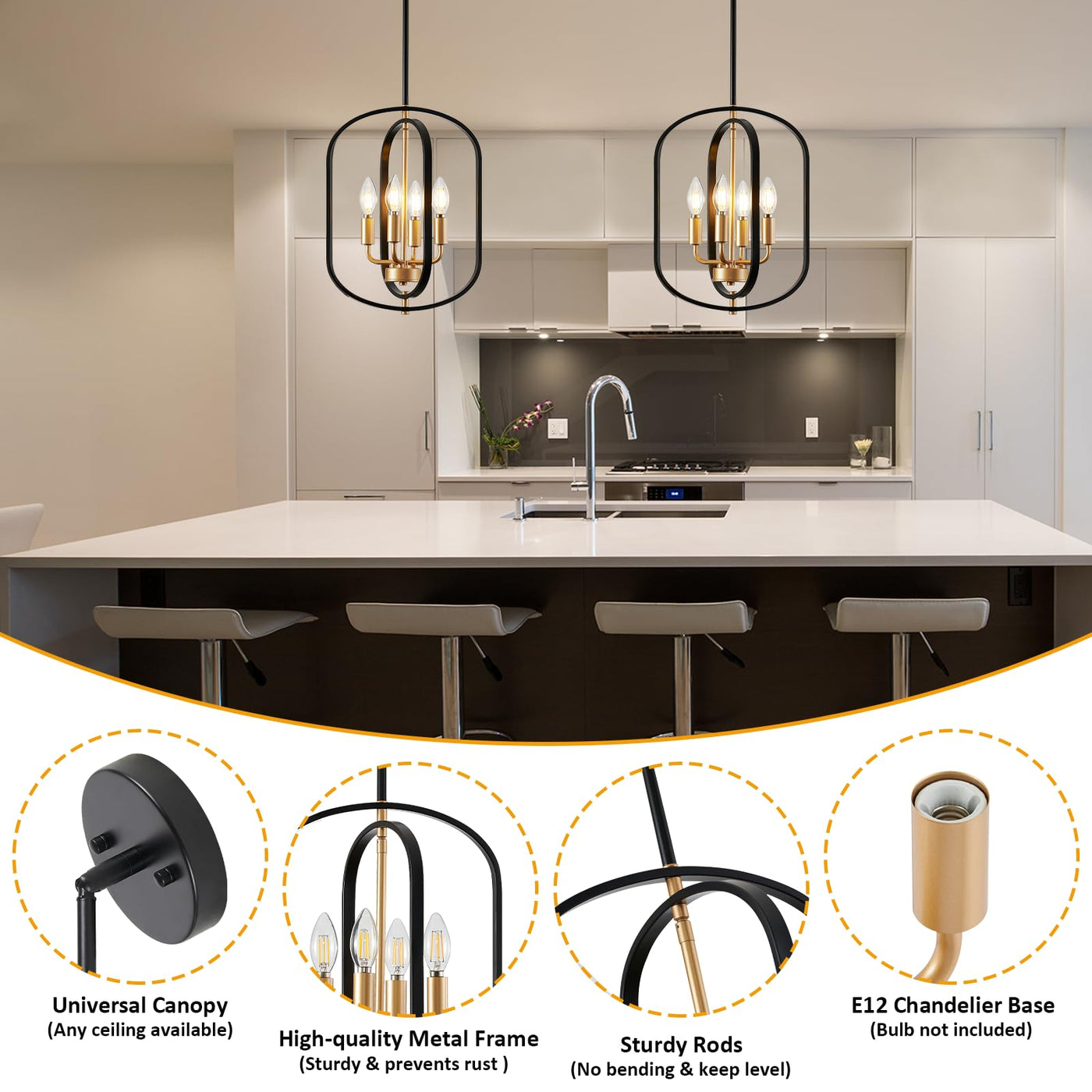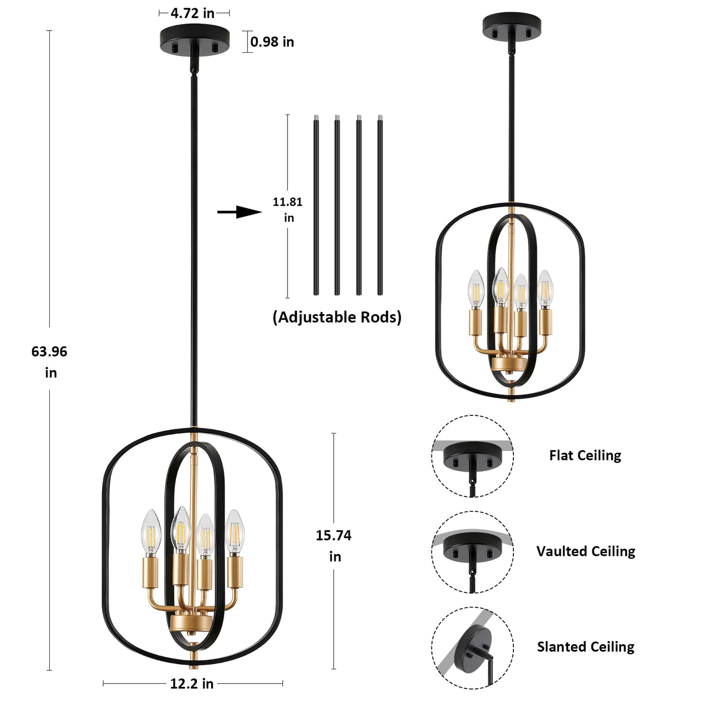Our Black And Gold Dining Room Light Fixture, A Perfect Combination Of Modern Farmhouse And Industrial Design. This Black Farmhouse Chandeliers For Dining Room Features A Unique Lantern Shape, Allowing For Maximum Light Dispersion And Creating A Captivating Ambiance In Any Space. The Matte Black Frame, Complemented By Elegant Gold Accents, Seamlessly Blends With Various Interior Styles, Making Gold And Black Chandelier Light Fixture A Versatile Choice For Any Room. Designed With Convenience In Mind, This Foyer Chandeliers For High Ceilings Are Compatible With Any E12 Base Bulb, Providing You With Endless Lighting Options. Assembly And Installation Are A Breeze, Thanks To The Easy-To-Follow Instructions Included. The Adjustable Height Feature Allows You To Customize The Chandelier For Bedroom Placement To Suit Your Space Perfectly. With Its Black And Gold Finish, This Farmhouse Pendant Lights Kitchen Island Effortlessly Adds A Touch Of Elegance And Sophistication To Any Space. Upgrade Your Foyer Lighting Fixtures With This Farmhouse Light Fixtures, Designed To Elevate Your Home Decor. The Black Lantern Shape, Combined With The Gold Accents, Adds A Touch Of Rustic Charm While Maintaining A Contemporary Appeal. Whether You Need Chandelier For Dining Room, Entryway Chandelier For Foyer, Dining Room Lights, Living Room Light Fixture, Pendant Lighting For Kitchen Island, Hanging Lights For Bedroom, Foyer Chandeliers For High Ceilings, This Black Gold Light Fixture Is The Ideal Choice.