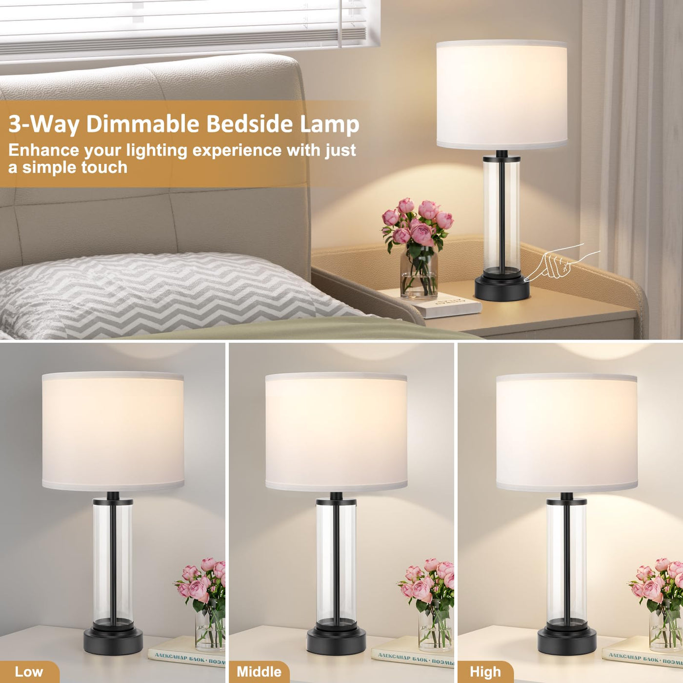 Q: Are the LED bulbs included with the lamps?A: Yes, each set of the 3-Way Dimmable bedroom lamps includes two E26 LED bulbs that are specifically designed to work seamlessly with the lamps.