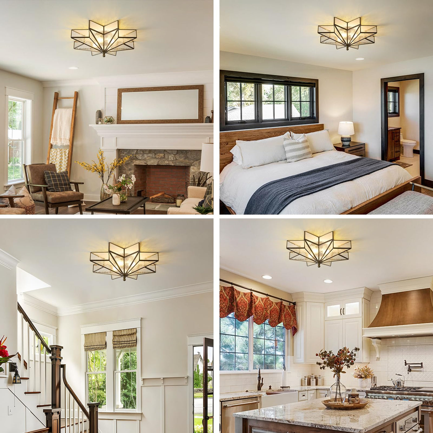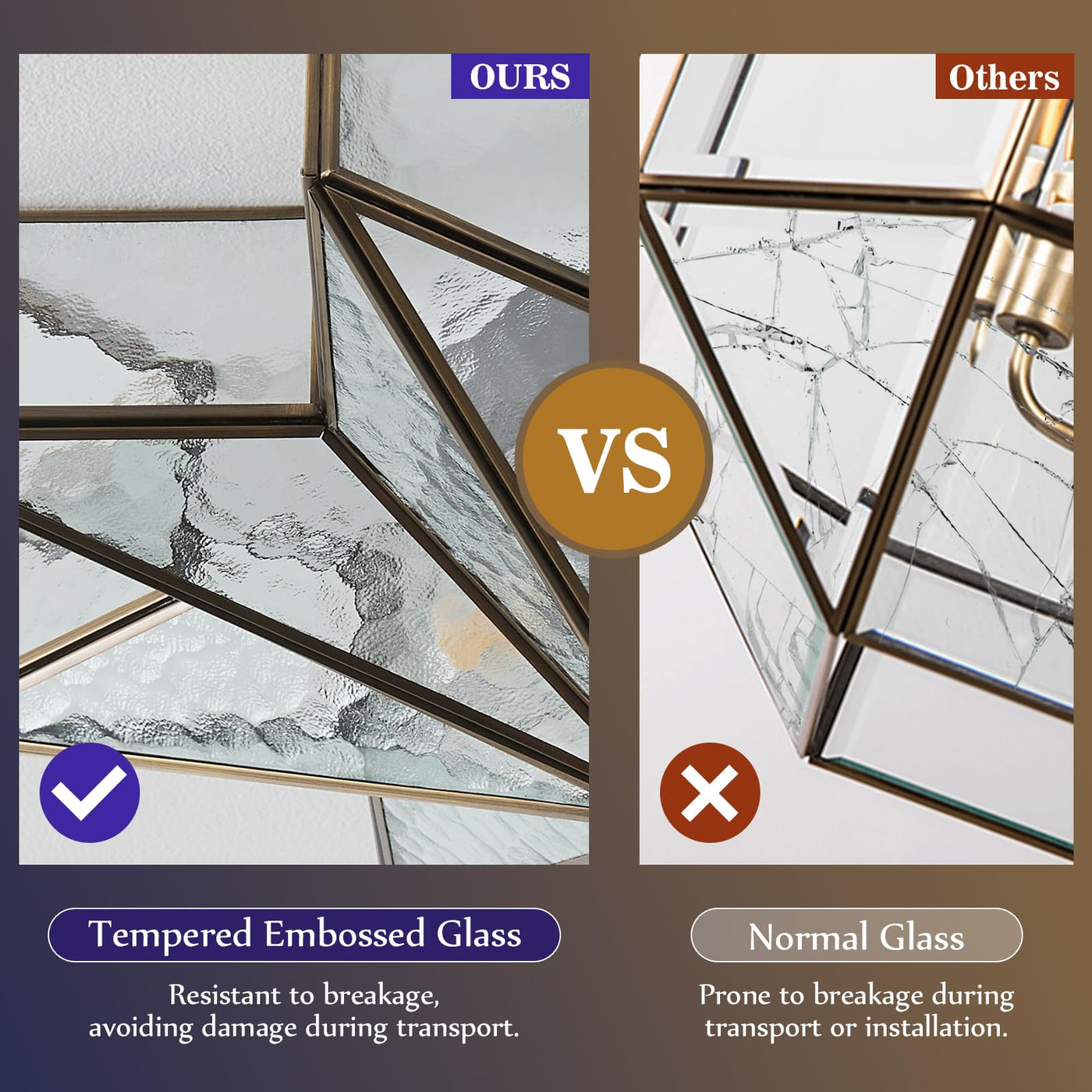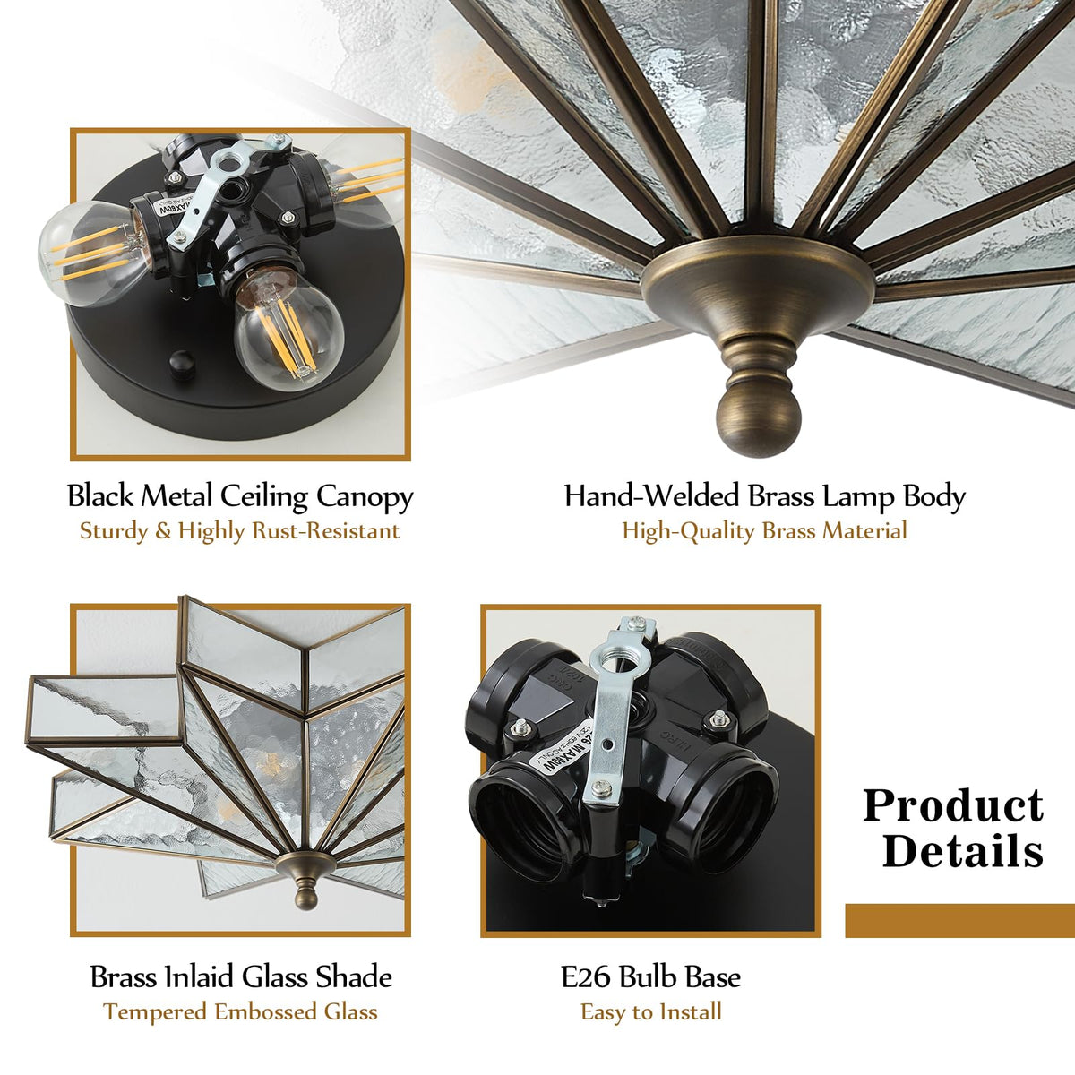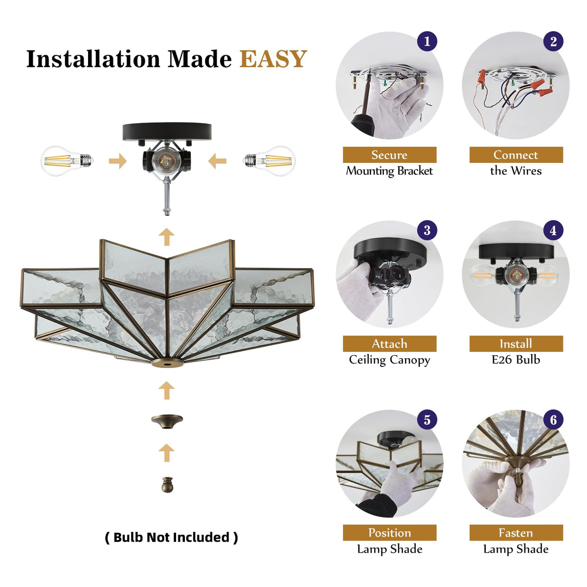 [Brass Inlaid Glass Shade]:After Handmade Carefully Slow Work Makes Fine Work To Ensure That Every Detail Is Exquisite And Beautiful Highlighting The High-End Quality. Selected well-made Brass Material With Excellent Light Transmittance Of The Glass Lampshade The Perfect Combination Of The Two Not Only Enhance The Beauty Of The Lamps And Lanterns But Also Enhance Their Practicality Suitable For A Variety Of Interior Decoration Adding A Touch Of Art To Your Home. [Size And Scene Application]:With A Diameter Of 19.5 Inches/500 Millimeters And A Height Of 6 Inches/150 Millimeters This Fixture Is Suitable For A Variety Of Use Scenarios Including Farmhouse Bedroom Foyer Livingroom Dining Room And Guest Room Providing You With Ample Lighting While Also Becoming A Decorative Highlight Of Your Space. [Compatible With E26 Bulbs]: Suitable For A Wide Range Of E26 Bulbs Quantity 4 (Bulb Not Included) Including Incandescent Led Cfl And Fluorescent Bulbs. Meet Your Diversified Lighting Needs While Providing Great Convenience For Light Installation And Replacement. [Easy Installation And Care]:Installation Just Need To Connect The Wires Fix The Wire Box Put The Lampshade (With All Installation Accessories And Installation Instructions Illustration). The Lampshade Can Be Detached And Dismantled Separately Easy To Take Care Of And Replace The Bulb. [Upgrade Toughened Glass]:The Product Glass Is Toughened So You DonT Have To Worry About Transportation Breakage To Enhance The User Experience. [Purchase Hassle-Free]:The Lamps Undergo Multiple Quality Checks And Professional Tests Before Shipment To Ensure Reliable Product Quality. We Use Thick And Sturdy Packaging Materials For Careful Wrapping All-Round Guarding The Safety Of The Lamps In Transit. Please Feel Free To Contact Us If You Have Any Questions During The Use.