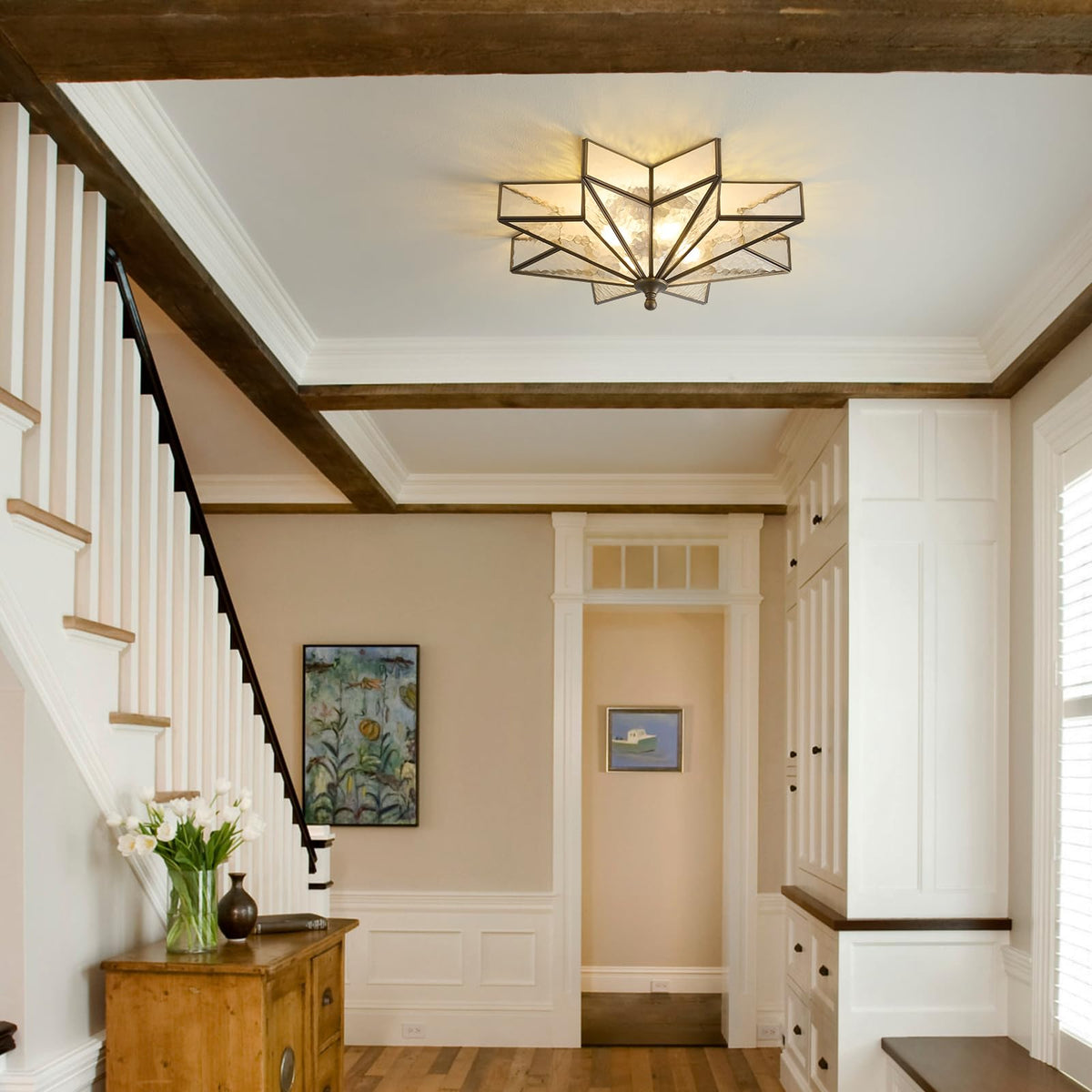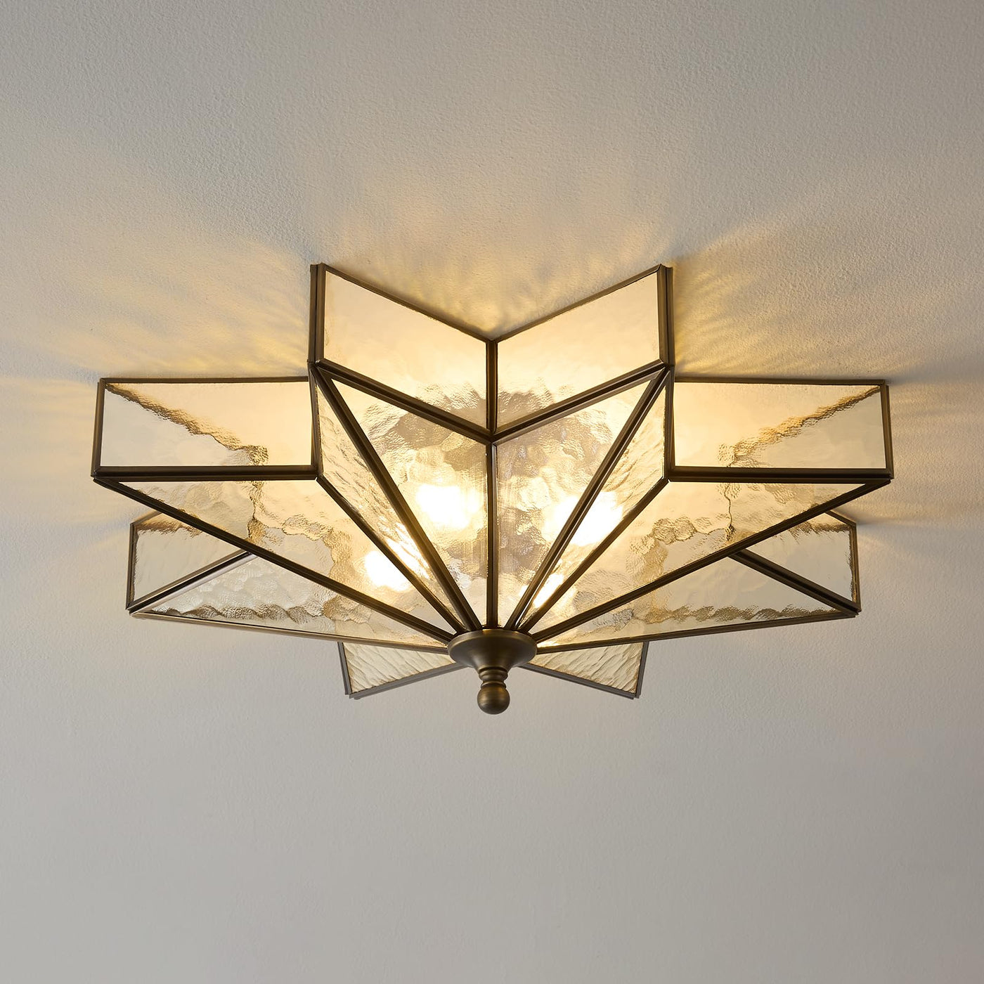 Black Bronze Star Ceiling Light - 19.5 Inch Brass Hammered Glass Large Flush Mount Fixture - Unique Art Deco Mid Century Vintage Moravian Lighting Lights For Bedroom Dining Foyer Living Room Fixtures