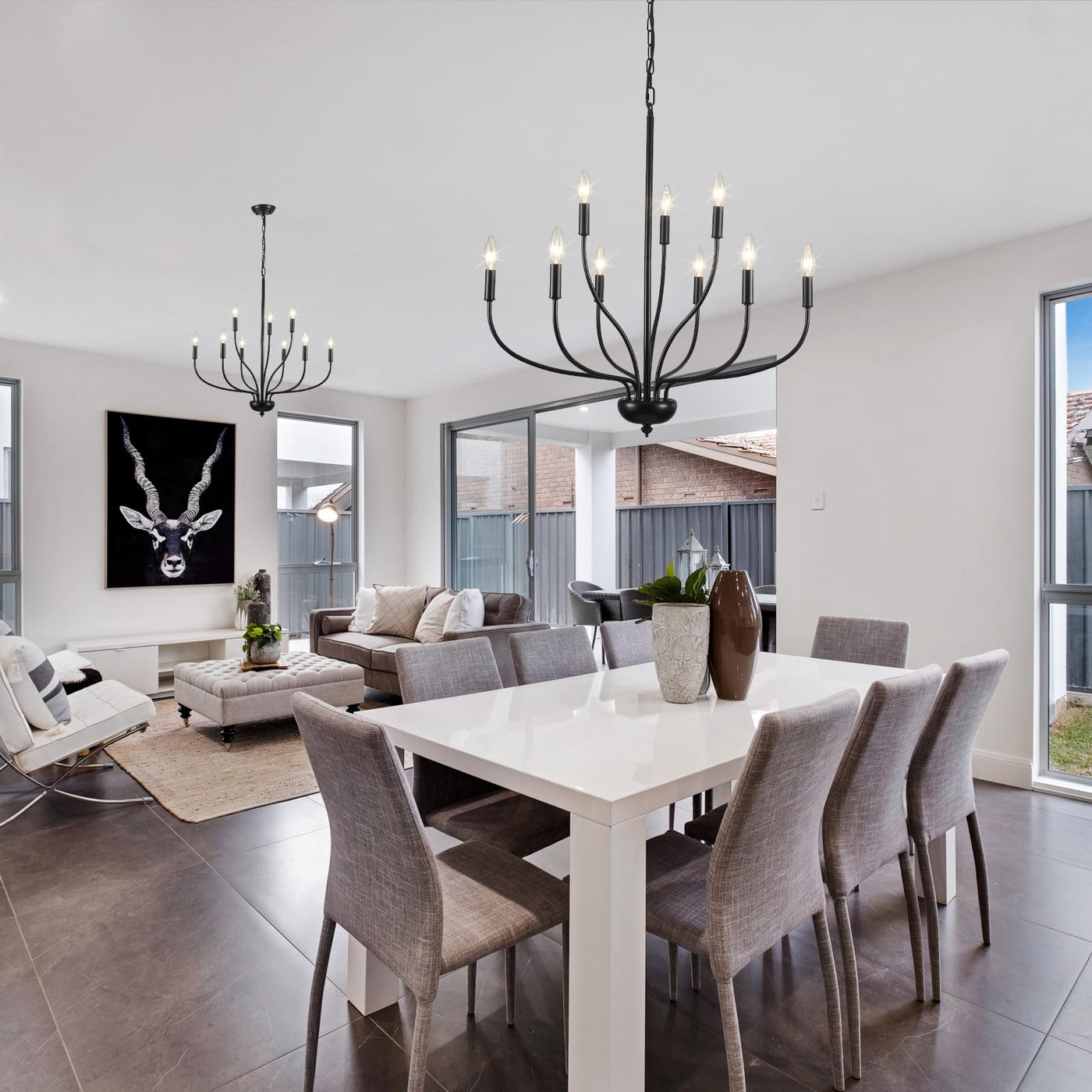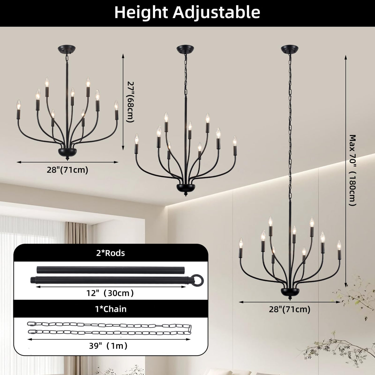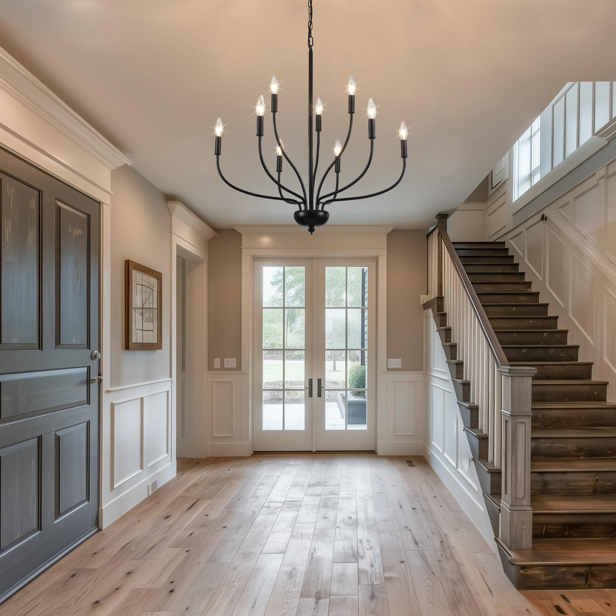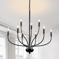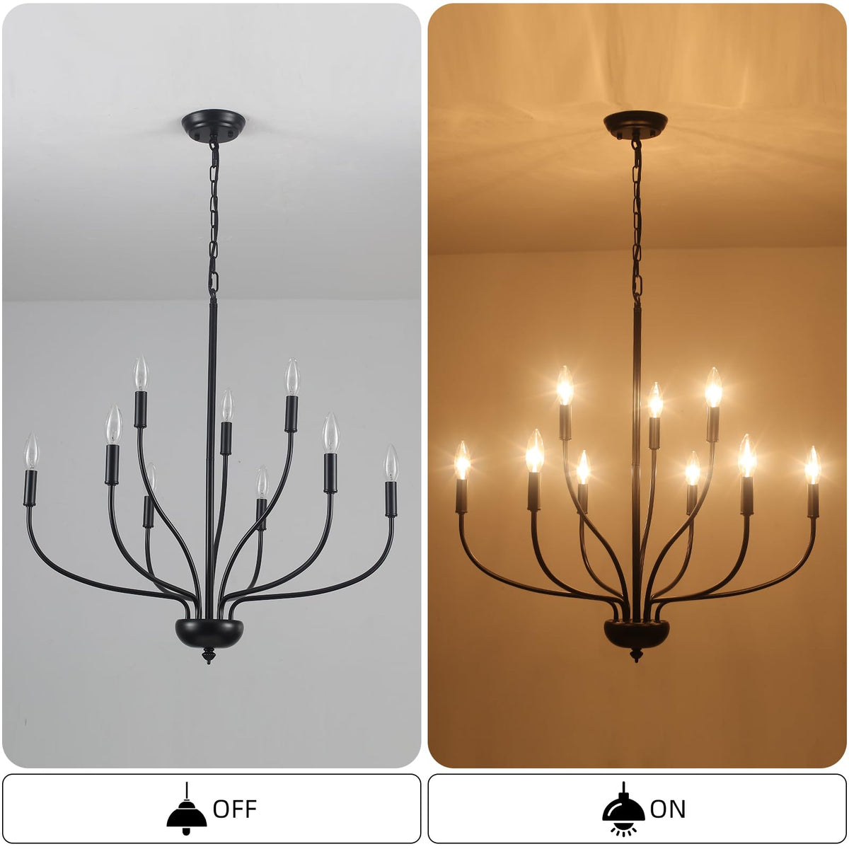 Black Chandeliers For Dining Room Light Fixture, 9-Light Farmhouse Candle Chandelier Foyer Lighting Fixtures, Industrial French