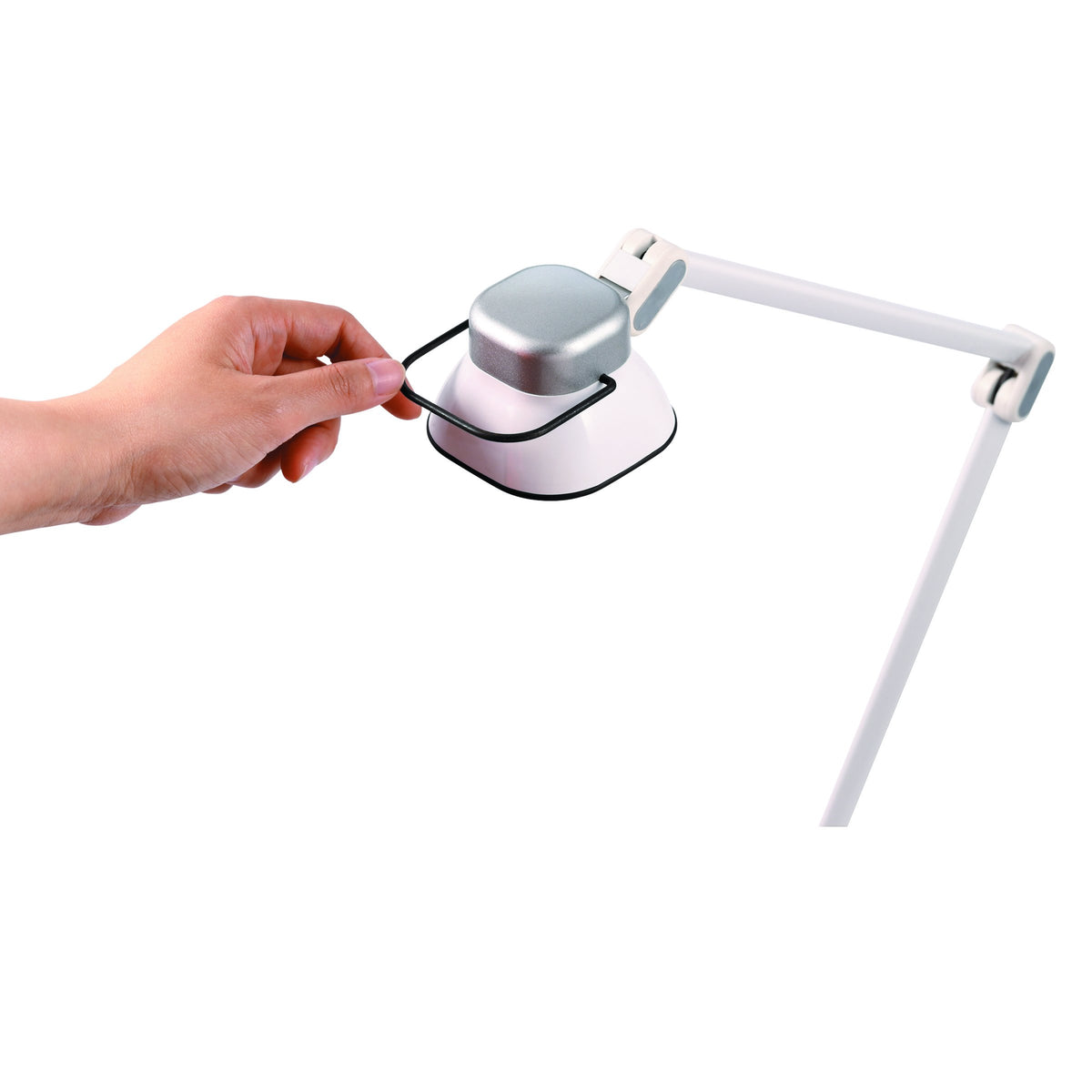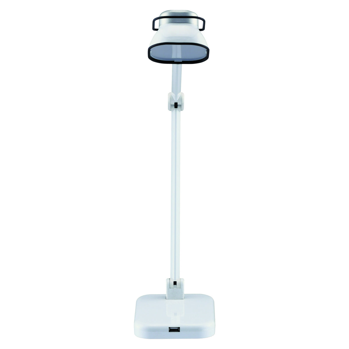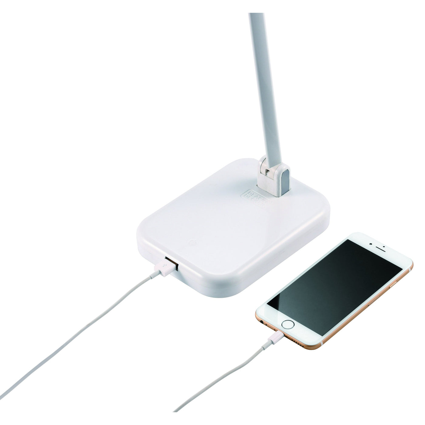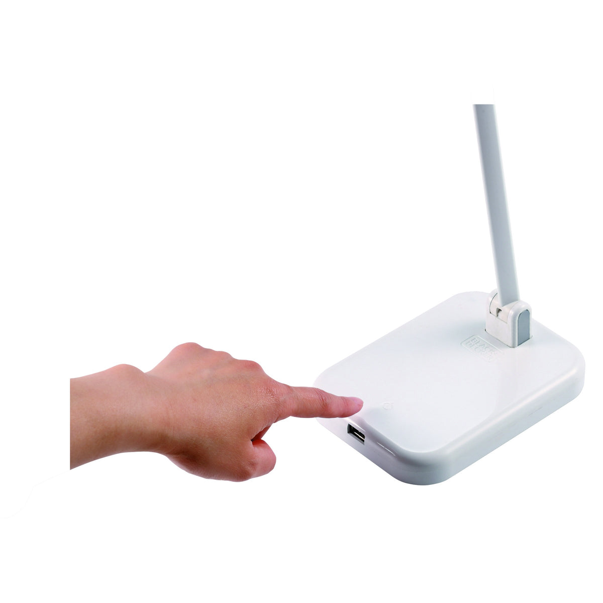 Contemporary styling with bright, crisp lighting to reveal the colorful world around it. With the modern Dual Arm lamp, easily adjust the lamp for a variety of lighting positions wherever you desire.BLACK+DECKER; PureOptics; Technology combines uniquely crafted LEDs with an optimized diffusing element to create a bright, expanded light zone that brings your world to life with a single touch. Through meticulous engineering, the PureOptics; LED lights conserve energy while simulating natural daylight; emit crisp, high contrast lighting; and reveals vivid, brilliant colors so you can work, play, and create with unparalleled clarity. FeaturesOne-Touch Control | Turning your desk lamp on and adjusting lighting levels has never been easier. One tap powers your lamp on to its last brightness setting, while a light press and hold flips through the three brightness levels. To power off, simply tap once more.USB Power Port | Conveniently built into the base is a USB power port for effortless device charging for all standard USB compatible devices - even when the light is off.Mobile Lamp Head | Designed to adjust to your needs, the lamp head (with an easy-grab handle), adjusts up to 180-degrees so you can find the perfect lighting angle.Optimized Diffuser | Unique in design, the diffusing element allows for an extra-wide shadow and glare-free natural lighting area that softly fades out.Ultra Reach Dual Lamp Arm | The two adjustable lamp arms' 23'' reach and wide range of motion allow you to easily and quickly position the lamp to your personal preference for desired light zones and bright, concentrated work areas.