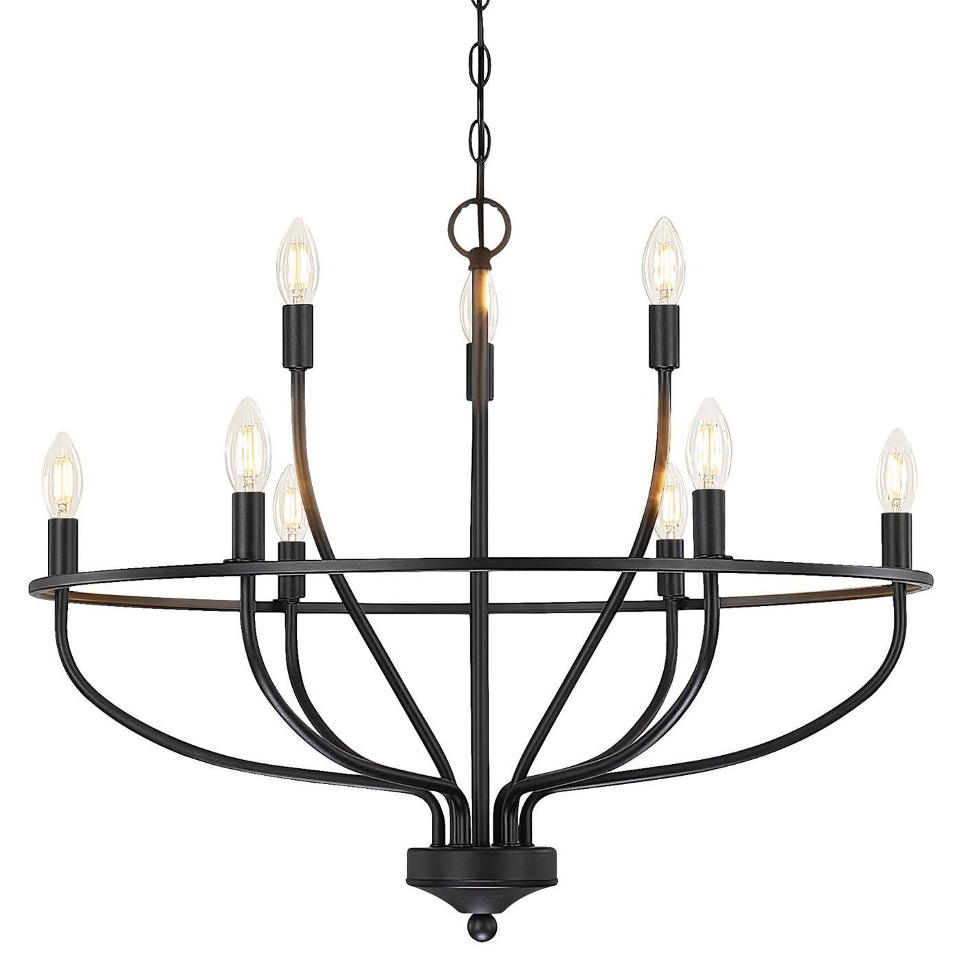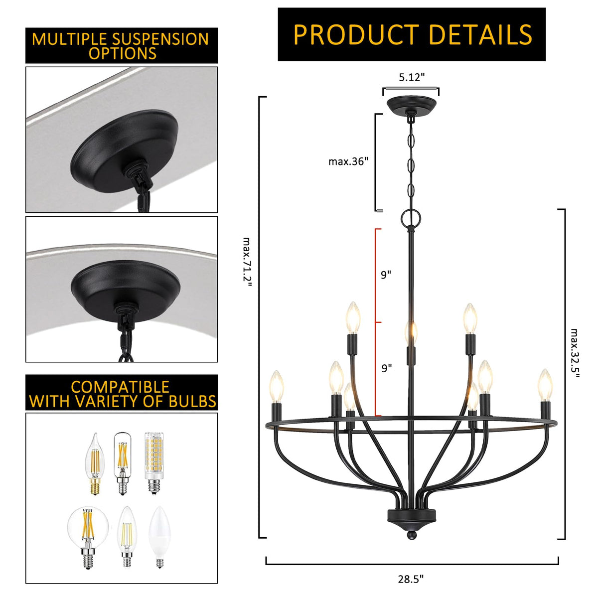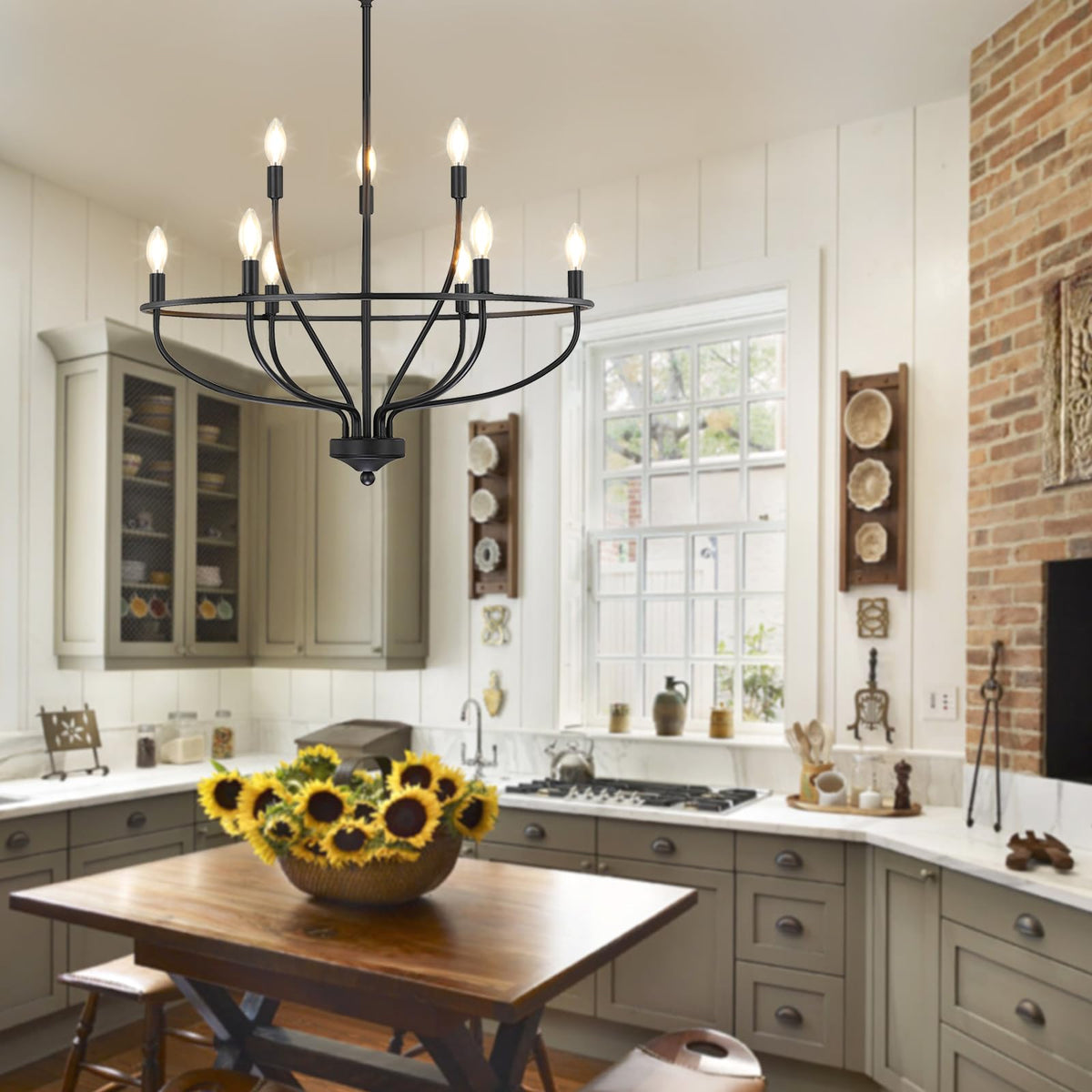 Black Dining Room Light Fixture, 28.5 Inch Diameter Modern Candle Chandeliers Over Table, 9-Light Farmhouse Chandelier For Kitch