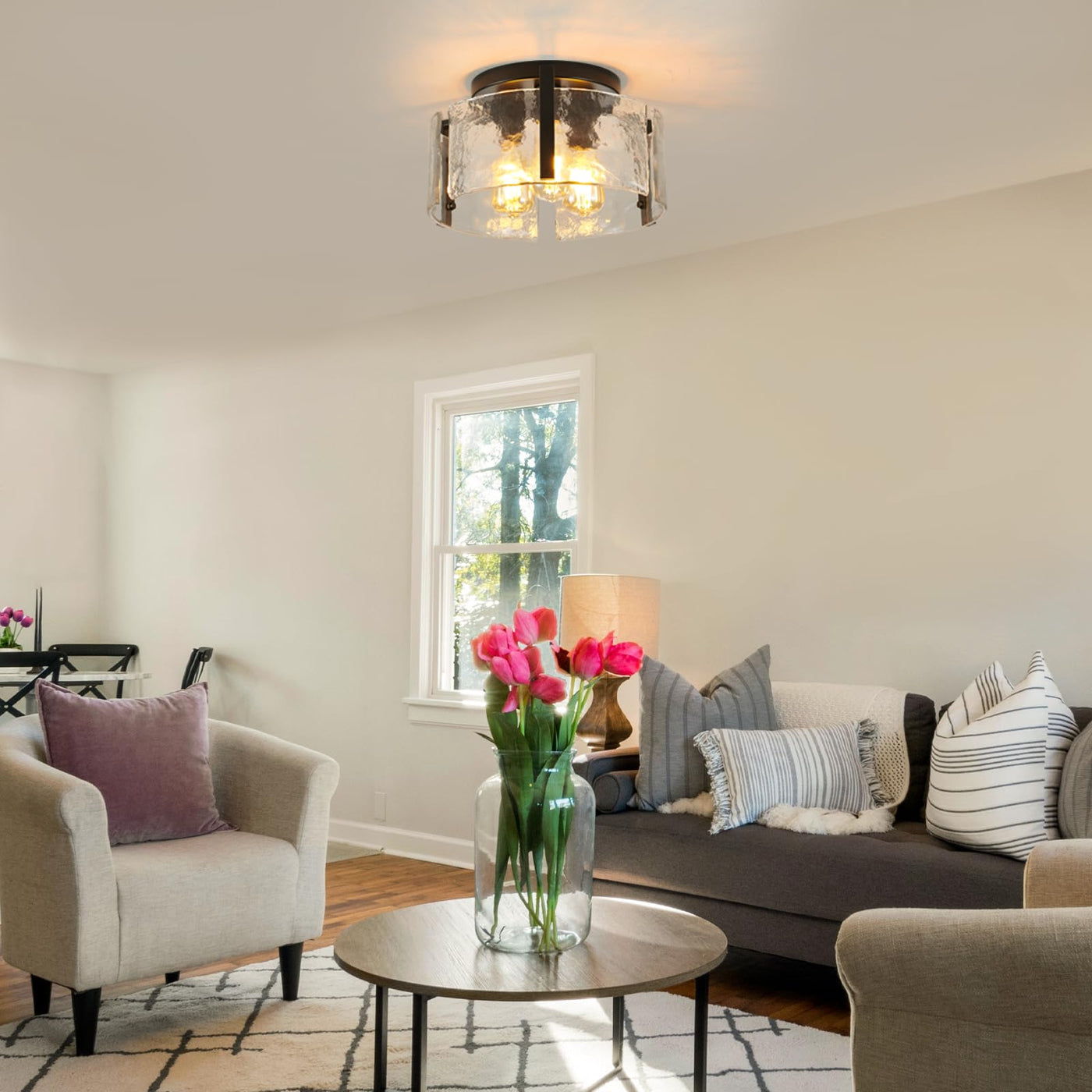 Q: How do I maintain the Black Semi Flush Mount Ceiling Light Fixture?A: Maintaining the fixture is easy due to its open glass shade design, which allows for simple cleaning and access to the bulb. Regular dusting and occasional glass cleaning will keep it looking new.