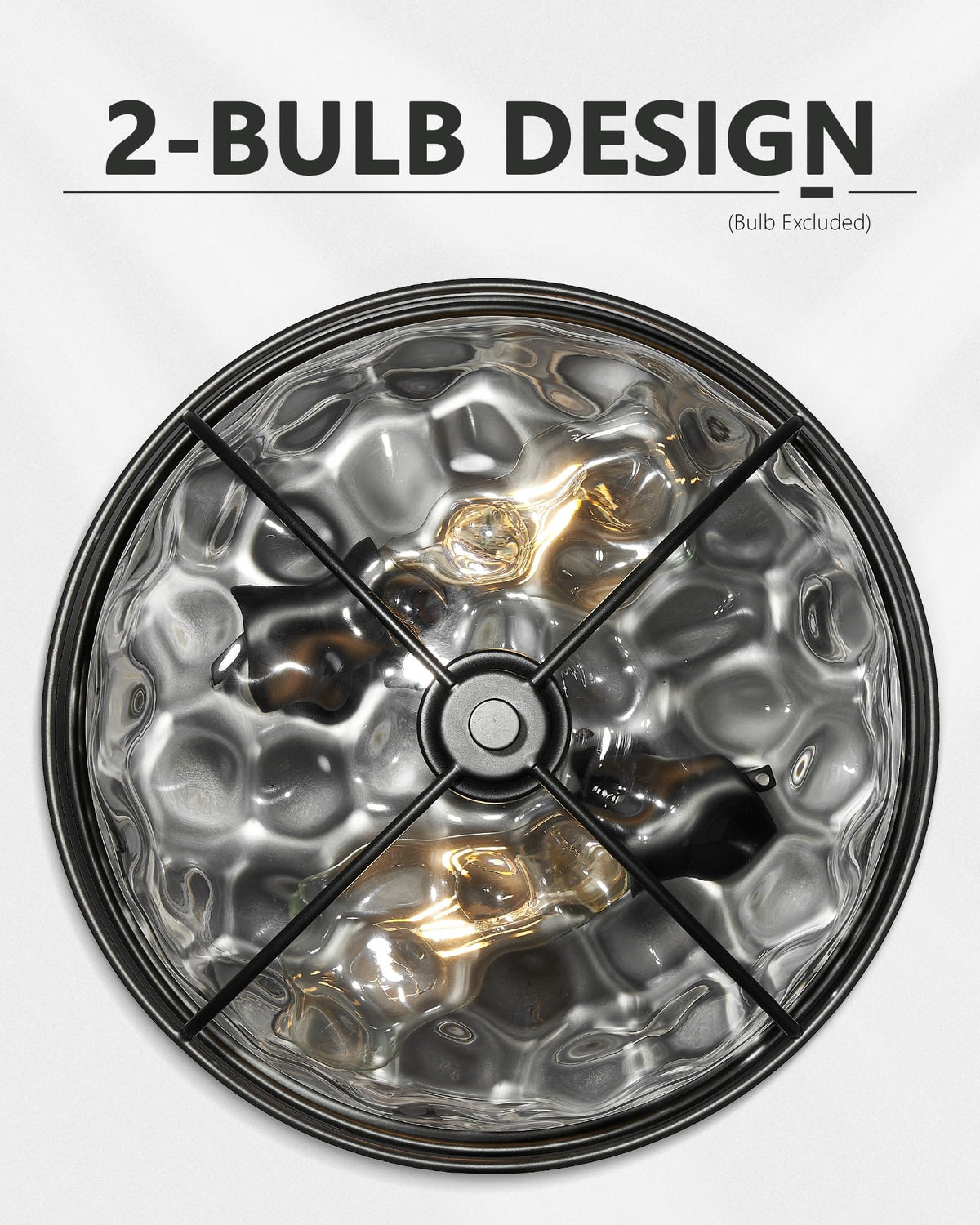 Black Flush Mount Ceiling Light, Hwh 12 Inch 2-Light Farmhouse Close To Ceiling Light Fixture In Matte Black Finish With Water R