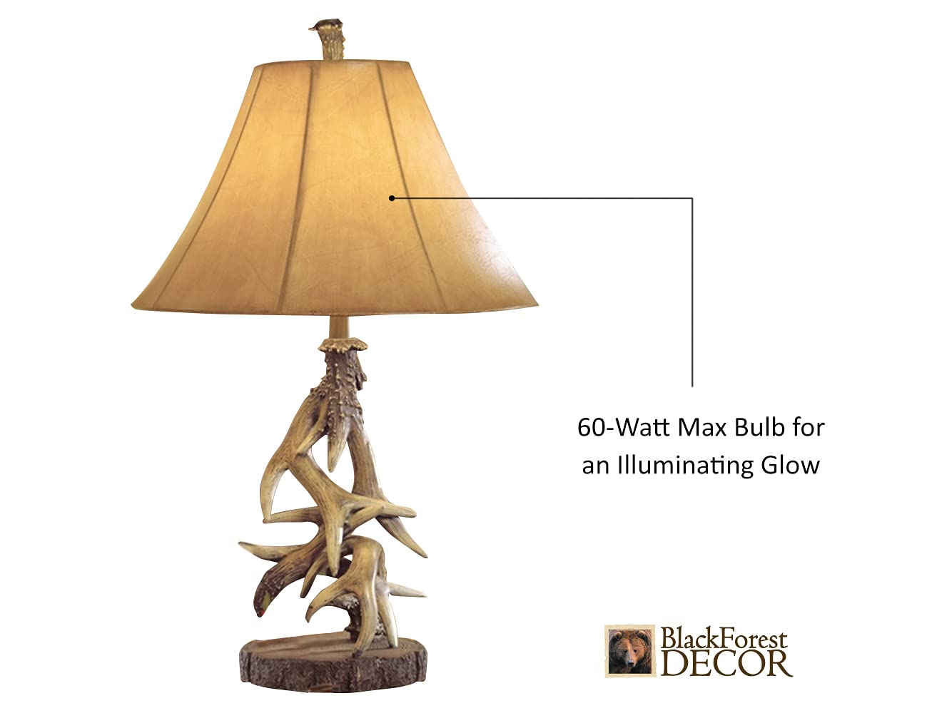 Bring The Wilderness Indoors With The Black Forest D?Or Faux Antler Table Lamp, A Striking Addition For Any Rustic Cabin Or Lodge. This Lamp? Intricate Faux Antler Base Forms A Naturalistic Foundation Topped With A Tan Faux Suede Shade, Casting A Warm Glow Ideal For Cozy Evenings. Constructed From Quality Materials, It Offers Both Style And Resilience, Making It Perfect For Nature-Inspired Homes. Measuring 18''Dia. X 28.5''H, This Lamp? Classic, Rustic Charm And Attention To Detail Make It An Excellent Accent For Hunters, Outdoor Enthusiasts, Or Anyone Looking To Add A Touch Of The Wild To Their Decor. Uses A 60-Watt Max Bulb (Not Included).