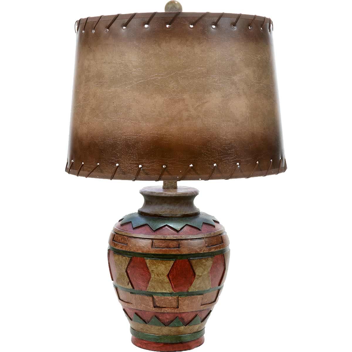 Q: What style does this lamp complement?A: This lamp features a textured tribal design that embodies Southwestern charm, making it a great addition to rustic or southwestern-themed home decor.