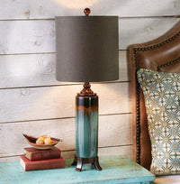 Elevate Your Home Decor With The Canyon Rim Table Lamp From Black Forest D?Or. This Exclusive Lamp Features A Stunning Turquoise, Gold, And Copper Drip Glaze, Creating A Southwestern-Inspired Look That? Perfect For Cabins, Living Rooms, Or Bedside Tables. The Mocha Silk Shade Provides Soft, Inviting Lighting, Making It A Great Addition To Any Space. Measuring 32.5''H X 13''W, This Lamp Is Both Functional And Decorative, Adding A Touch Of Rustic Elegance To Your Home. Whether You'Re Decorating A Cozy Cabin Or A Modern Home With A Touch Of Wilderness, This Lamp Brings The Beauty Of The Outdoors Inside. Keywords: Rustic Table Lamp, Southwestern Decor, Turquoise Lamp, Lodge Style, Cabin Lighting, Outdoor-Themed Home Decor.