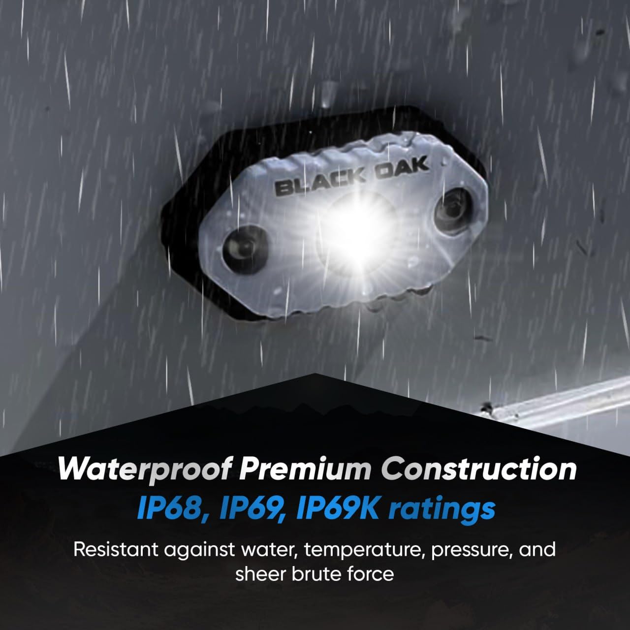 Q: What are the key features of the Black Oak LED Marine Boat Light?A: The Black Oak LED Marine Boat Light features easy installation with clear instructions, IP68, IP69, and IP69K ratings for high durability against water, temperature, and pressure, and it is designed for multi-purpose use like accent and compartment lighting.