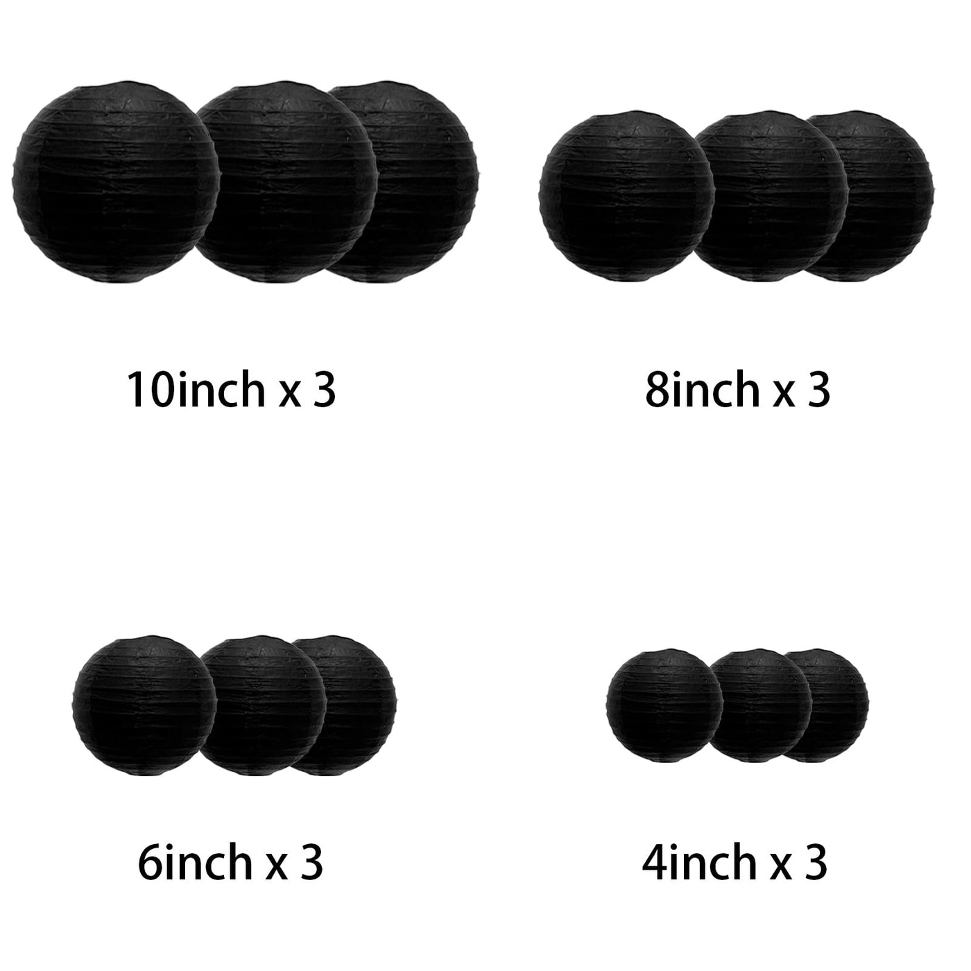 Black Paper Lanterns Decorative, Chinese/Japanese Hanging Round Paper Lanterns Decorations For Wedding, Bachelorette, Graduation