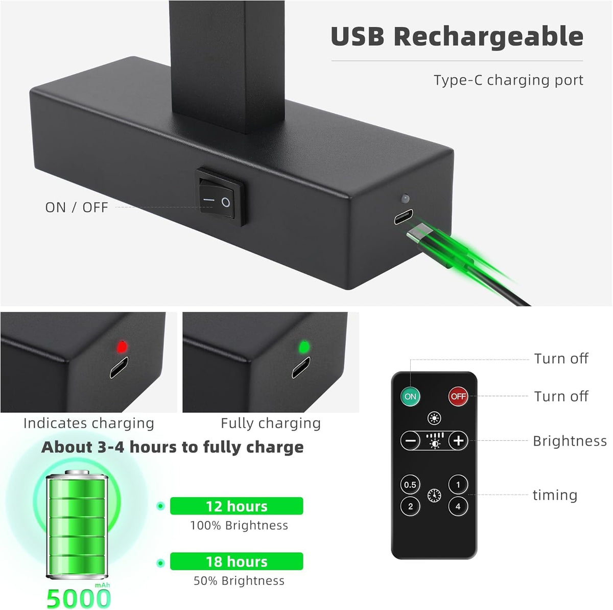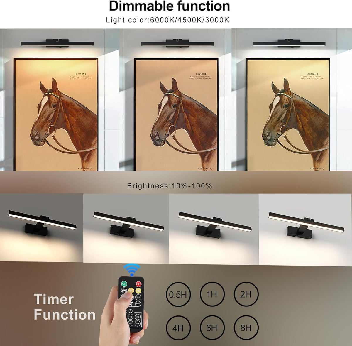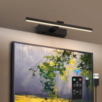 A rechargeable and adjustable brightness picture light for wall with a USB data cable, 3000K warm light, equipped with a 5000mAh battery. High Rendering Index, modern appearance, suitable for use in various scenarios.For example, areas that require lighting and decoration such as gallery/above bathroom mirrors/paintings and photos on the wall/bookshelves.