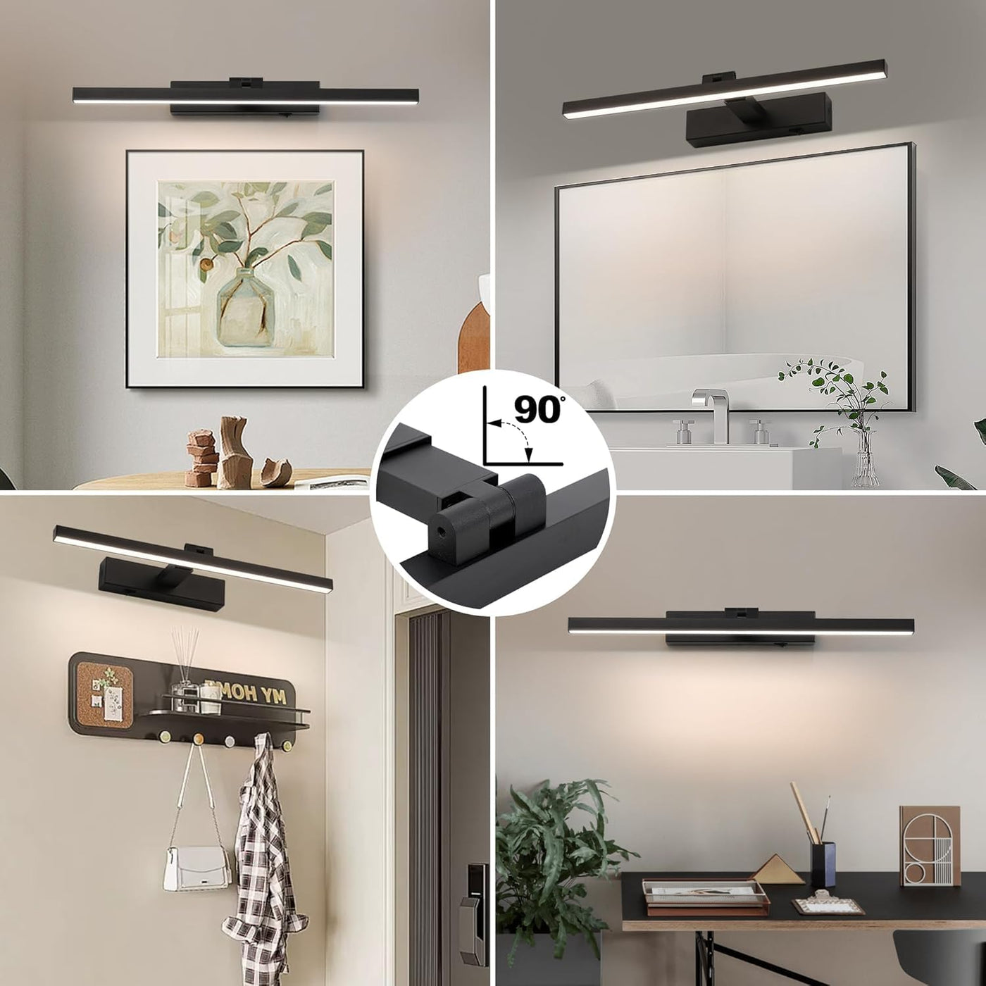 Black Picture Lights For Wall Dimmable Wireless Picture Lights For Paintings Dual-Rods Swing Arm Led Wall Light Fixtures Adjusta