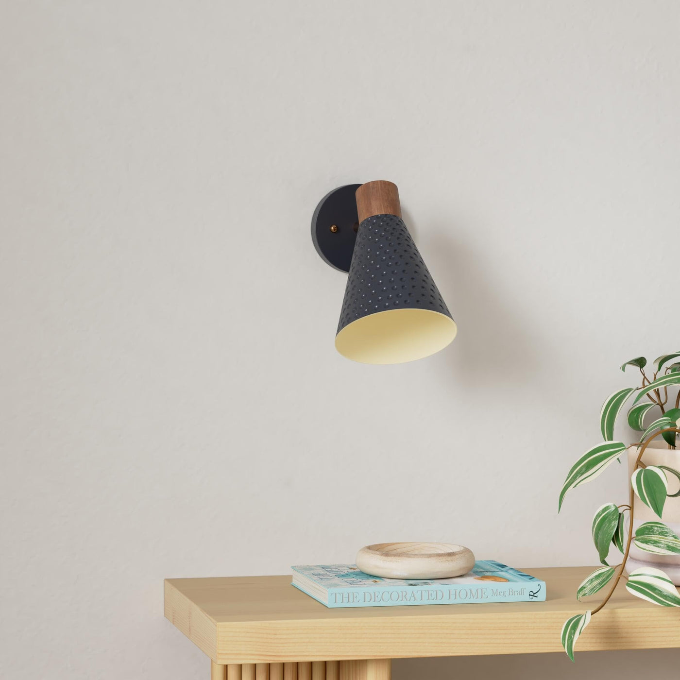 Black Plug In Wall Sconces Set Of 2, Modern Wall Light With Plug In Cord, Wooden Plug In Wall Lamps With Hammered Metal Shade, Corded Wall Sconce Light Plug In For Bedroom, Living Room, Hallway