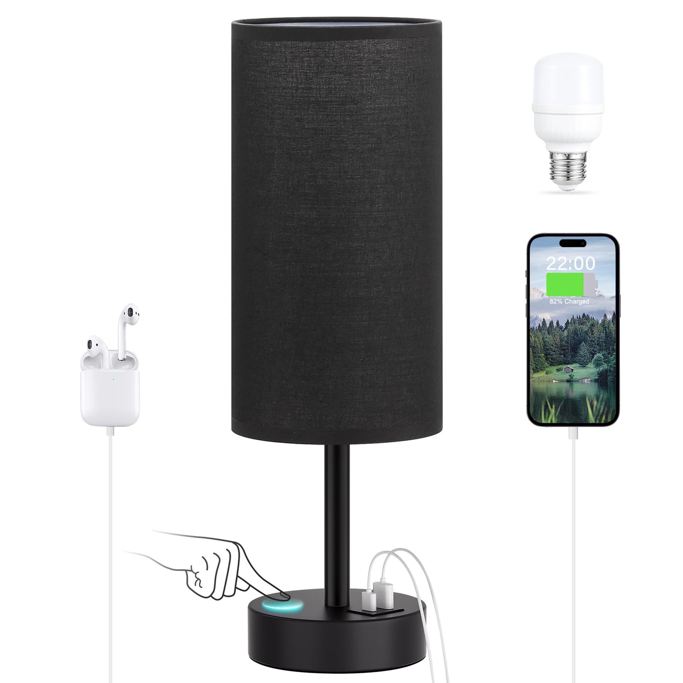 Q: Is the Black Touch Bedroom Lamp safe to use?A: Yes, all parts of the Black Touch Bedroom Lamp are UL listed, ensuring it meets safety standards for electrical devices. If you have any questions or concerns about its use, customer support is available to assist you.