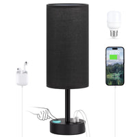Black Touch Bedroom Lamp With Usb - 3 Way Dimmable Table Lamp For Bedroom, Nightstand Lamp With Black Charging Station For Desk