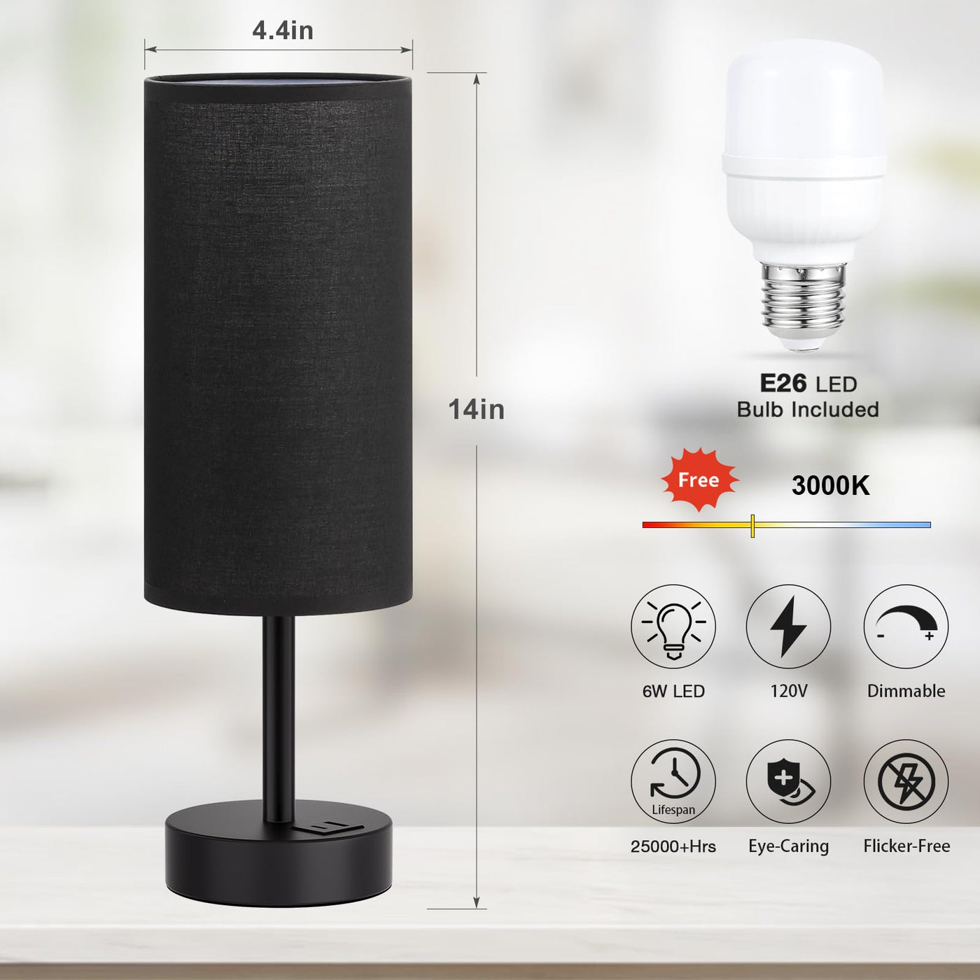 Q: What type of bulb is included with the lamp, and is it energy-efficient?A: The lamp comes with a 6W LED bulb, which is not only energy-efficient but also lasts longer than traditional bulbs. This helps reduce energy costs and minimizes the frequency of bulb replacements.