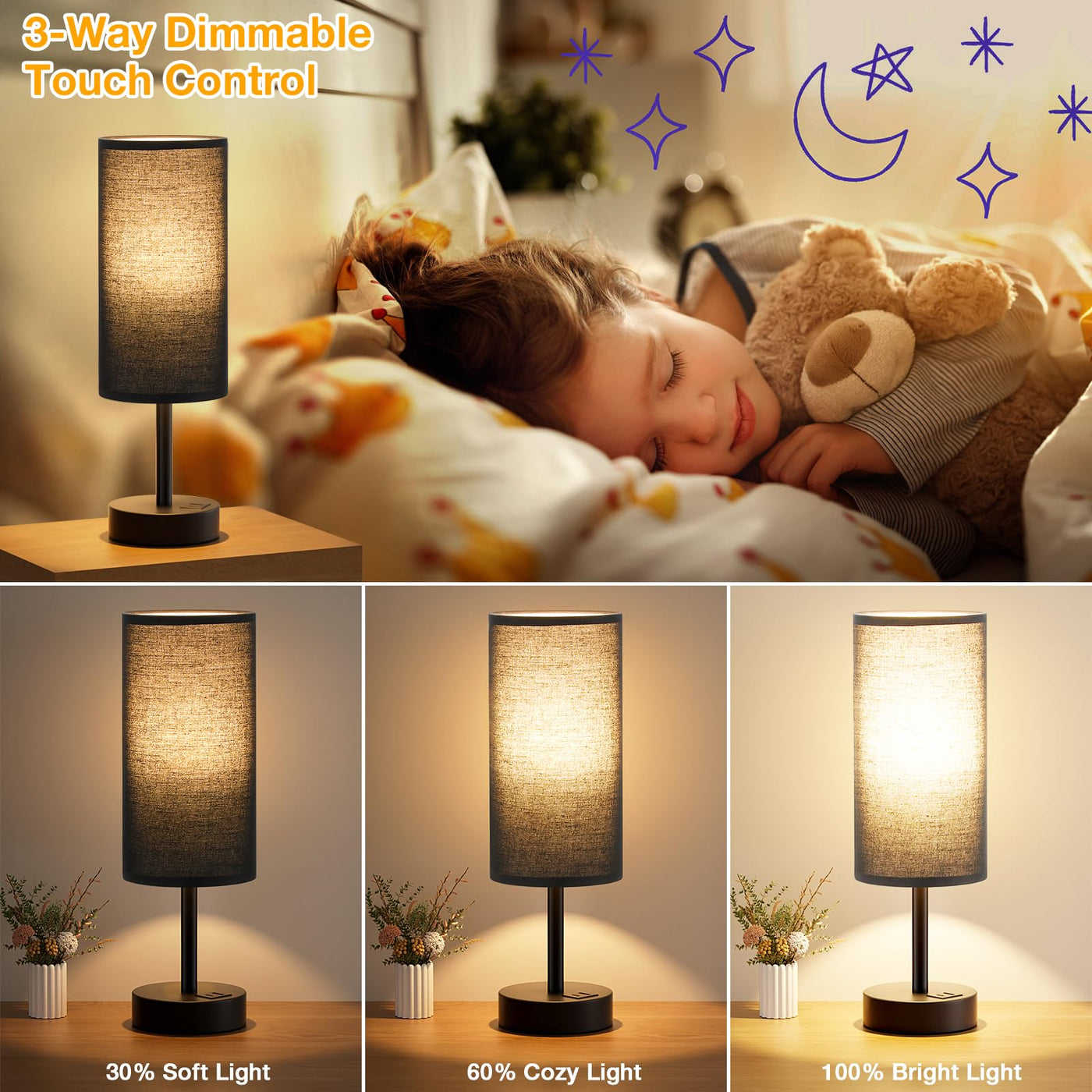Q: Where can I use the Black Touch Bedroom Lamp?A: This versatile lamp can be used in various settings, including bedside tables, desks, living room side tables, and even dorm rooms. Its small size and 3-way dimmable feature make it ideal for creating the perfect ambiance for reading or relaxation.