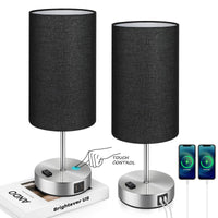 3-Way Dimmable & Easy Touch control- Thanks to its highly-sensitive built-in touch control sensor, this table lamp can suit your various lighting needs That is to say, one simple tap on any parts of the metal base and pole can not only turn the lamp on or off, but also create different lighting atmosphere for you Therefore, no matter what you are doing, you can set the brightness as desired from the three preset light levels Two USB charging Ports & One Ac Outlet- Brightever set of two table lamps come with dual 5V21A USB charging ports and one 2-Prong Ac Outlet So you donAt need to find extra sockets any more as long as you have these table lamps that can help you charge multiple electronic devices at the same time no matter the lamp is on or off, including smart phone, earphone, laptop, e-book and humidifier Two Free LED Bulbs Provided as Bonus- Two free A19 LED dimmable bulbs are included in the package, so you donAt need to spend extra time looking for compatible bulbs These bulbs give off 5000K daylight white light at 800 lumen which only use 7 wattage, saving much energy and money for you The bulbs emit stable light through the fabric lampshades, which can surely protect you and your familyAs eyesight Simple Plus classic Design- Designed with numerous classic elements, including cylinder appearance and fabric lampshades, these dimmable table lamps are perfect decorations of all styles Despite their low profile, they can create unique and comfortable lighting ambience for your, serving as your lighting partner even after a long period of time You Have Brightevers Words We proudly stand behind all of our products 100% and care every feedback of you and cherish every time to make you a perfect purchase experience
