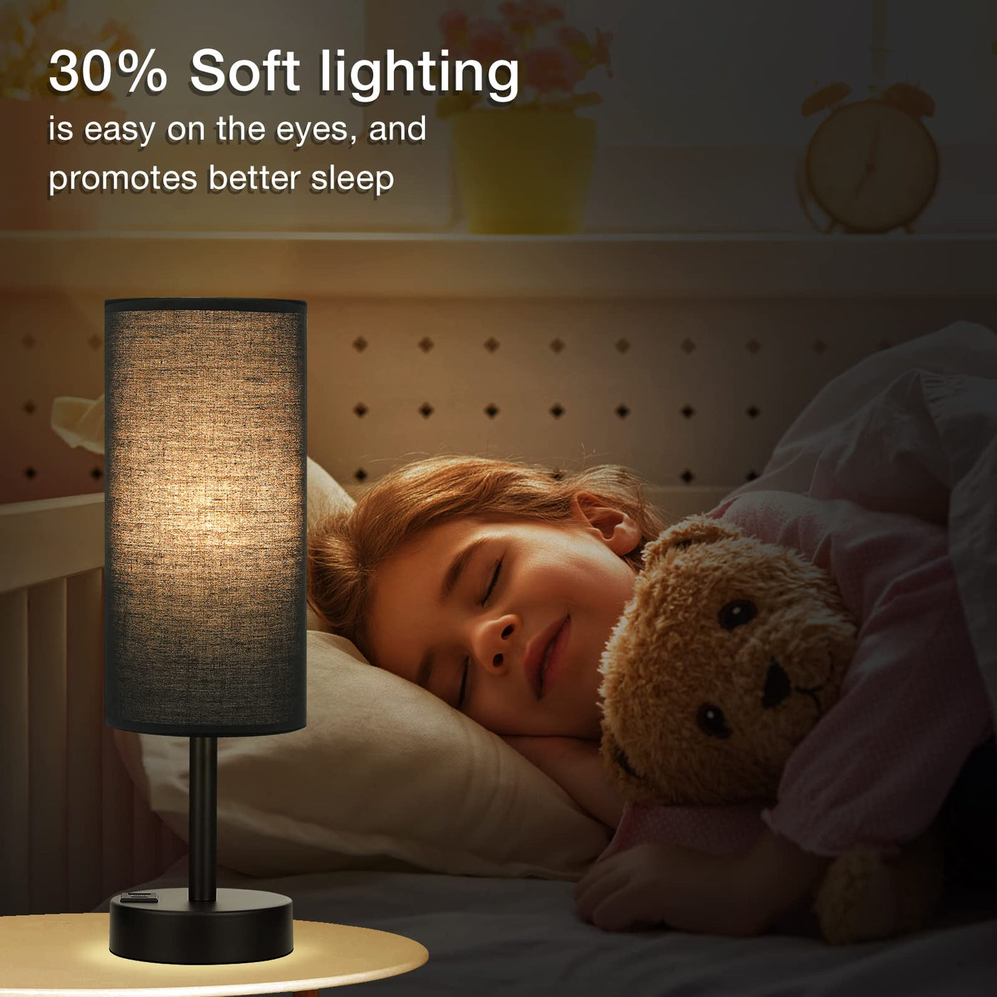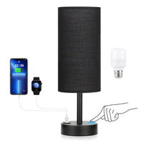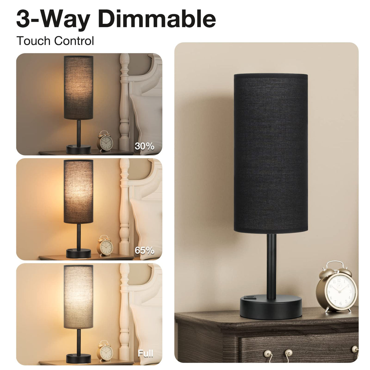 Black Touch Nightstand Lamps For Girl - Small Bedside Lamp With Usb-C And Usb Charging Ports, 3 Way Dimmable Control Table Lamp