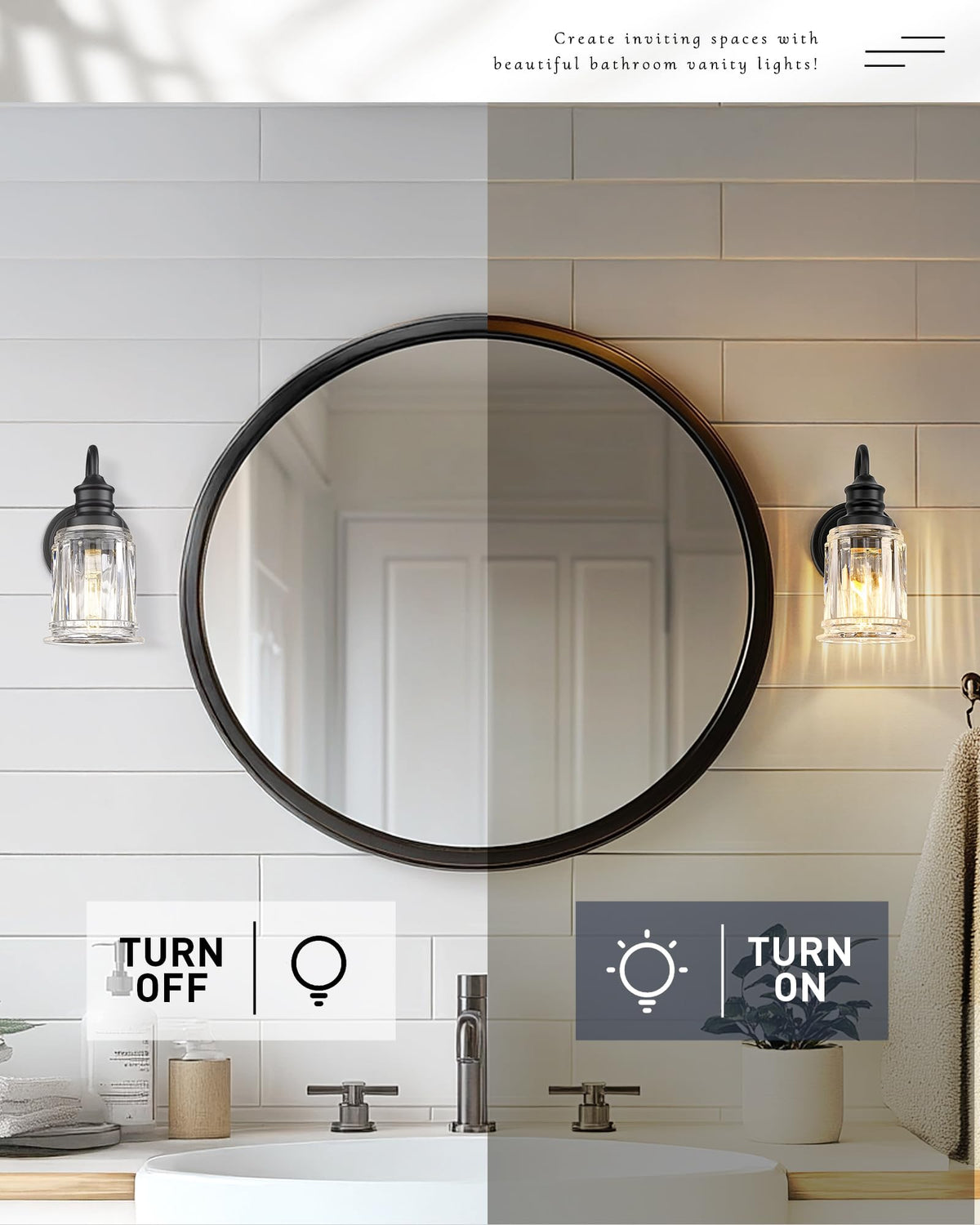 Black Wall Sconces Hwh Rustic Industrial Wall Lamps 1-Light Sconces Wall Lighting With Bell-Shaped Clear Glass Bathroom Vanity Light Fixture For Bedroom Living Room Kitchen 5Hzg106B Bk