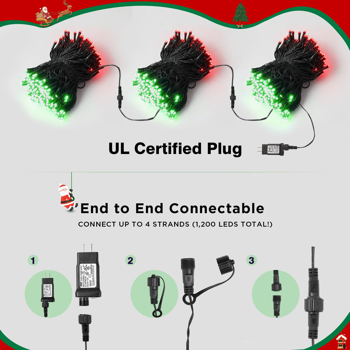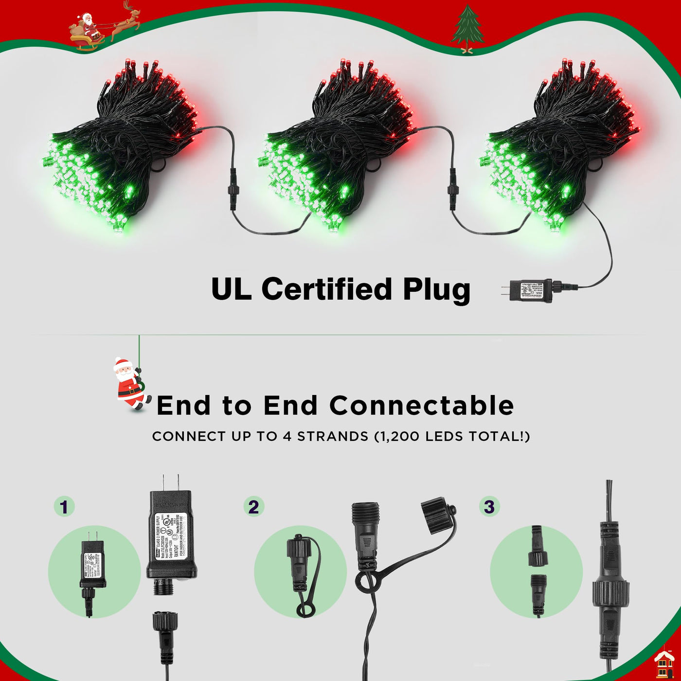 Blctec Christmas Lights Indoor Outdoor 300 Led 108Ft Ul Certified Christmas Tree Lights With 8 Modes Waterproof Timer End To End Connectable String Light For Trees Patio Xmas Decor Red Green