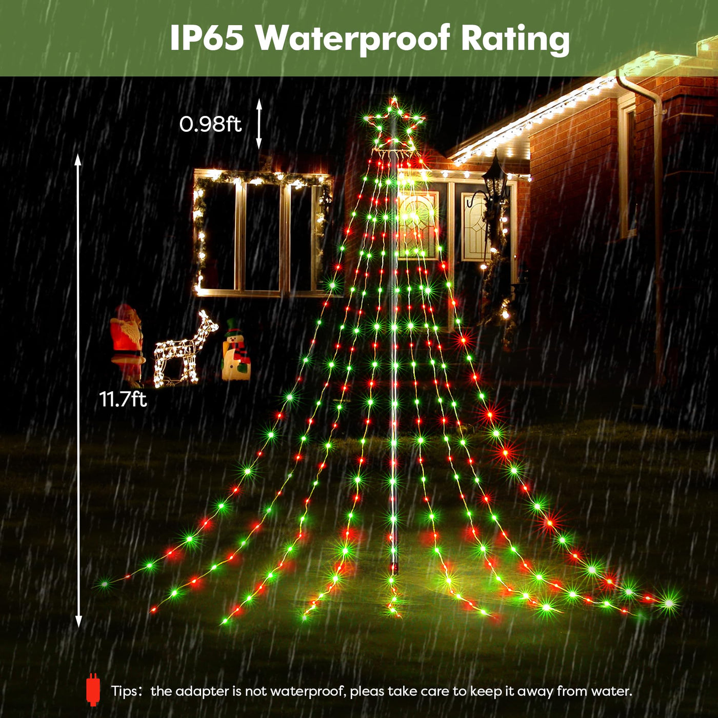 Blctec Outdoor Christmas Decorations, 352 Led Christmas Star Lights With 9 Strands 11.7Ft Waterfall Christmas Tree Lights, 8 Mod