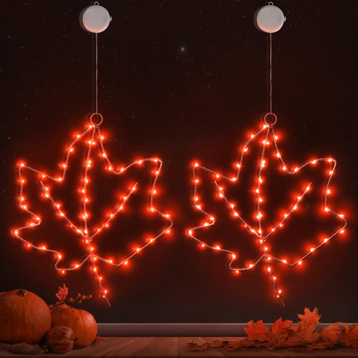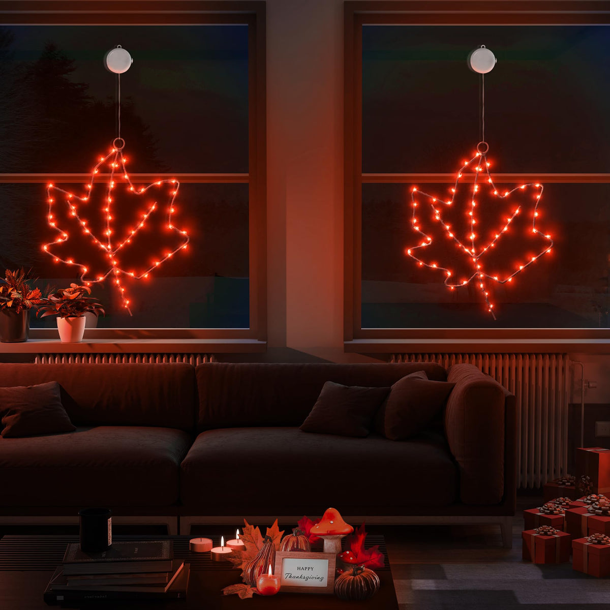 BlcTec Thanksgiving Window Lights, 10-Inch, Battery Operated, Metal Frame, Red, Model BT72, 2 Pack with Suction Cups