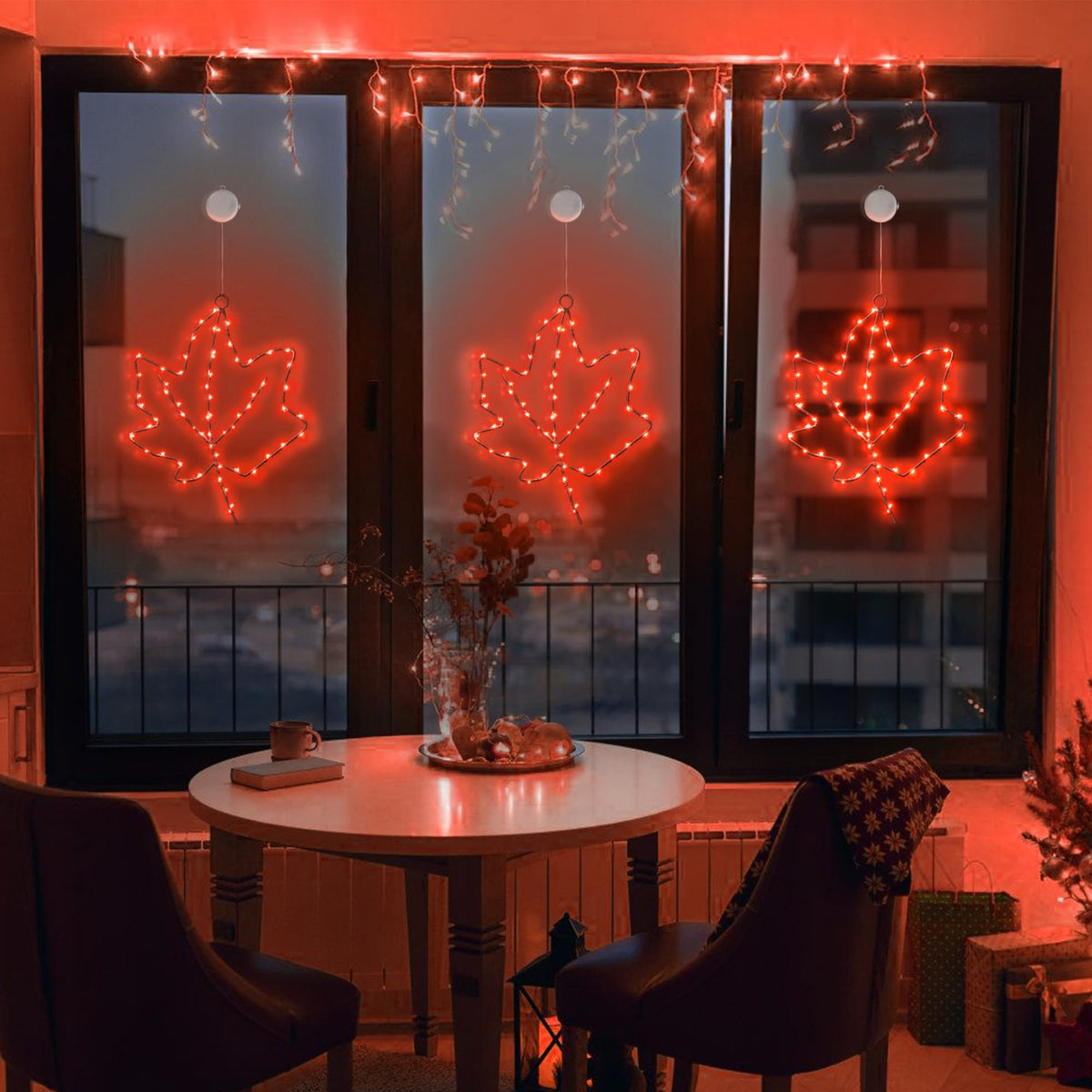 Festive Lighting: 65 vibrant red LED lights per maple leaf create a warm and inviting glow.