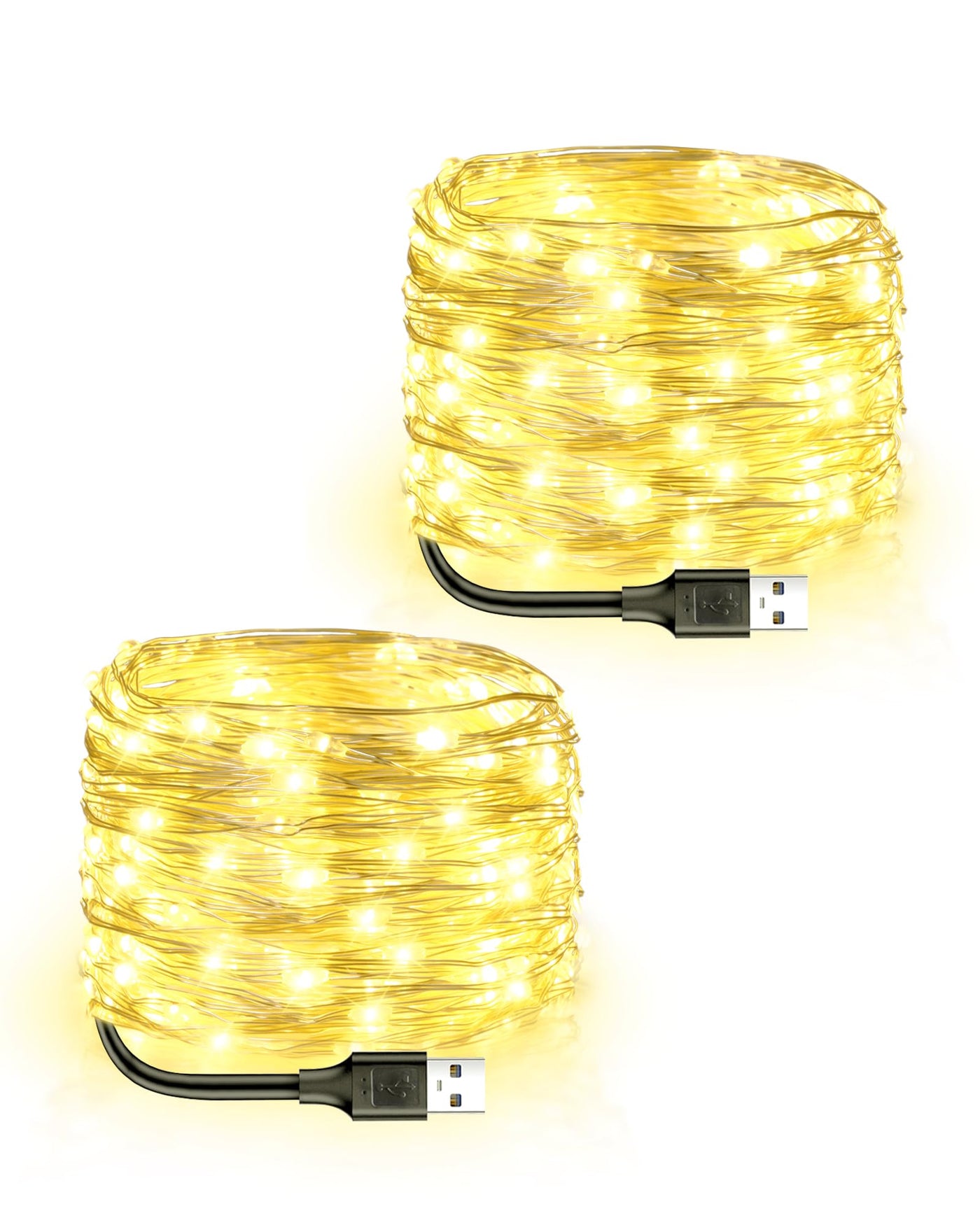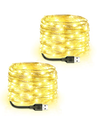 - **2 Pack Fairy Lights:** Each string light measures 33 ft with 100 LED bulbs. The USB lead cord is 11.8 inches, and the spacing between neighboring bulbs is 4 inches. The total length of 66 ft is ideal for Christmas tree decoration.