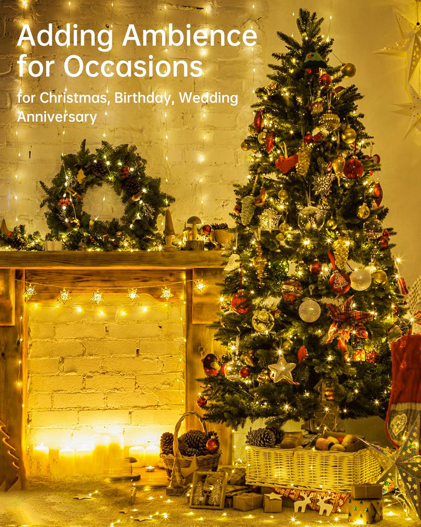 Q: What occasions are these fairy lights suitable for?A: These versatile fairy lights are perfect for a wide range of occasions, including Christmas, Halloween, Thanksgiving, weddings, birthday parties, and more. Their warm white glow creates a cozy atmosphere suitable for various celebrations.