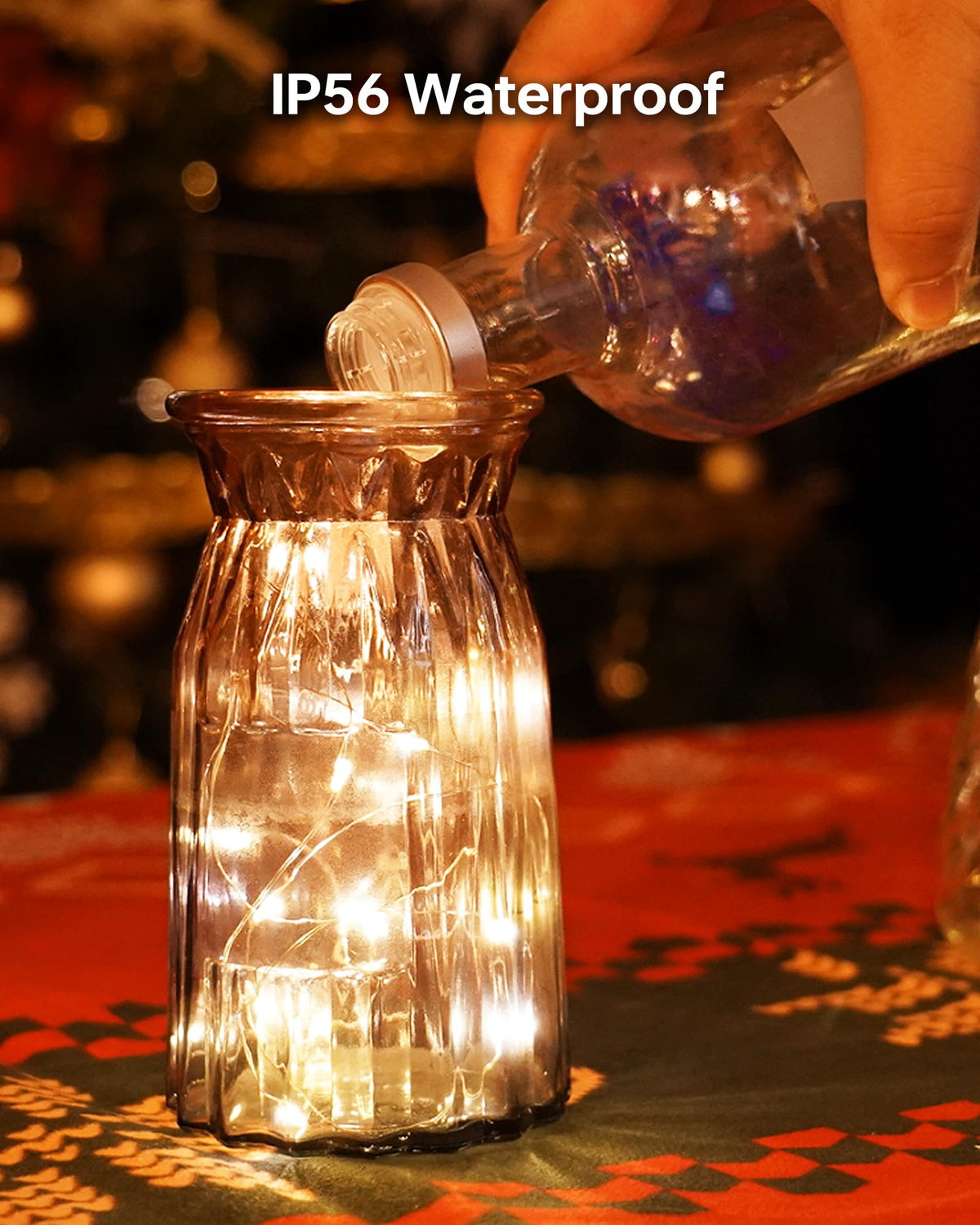 IP56 Waterproof: The strand of the lights is IP56 waterproof, you can enjoy these dreamy battery operated fairy lights inside your bedroom or outside on your patio, balcony, garden and so on. Notes: the battery case is not waterproof.