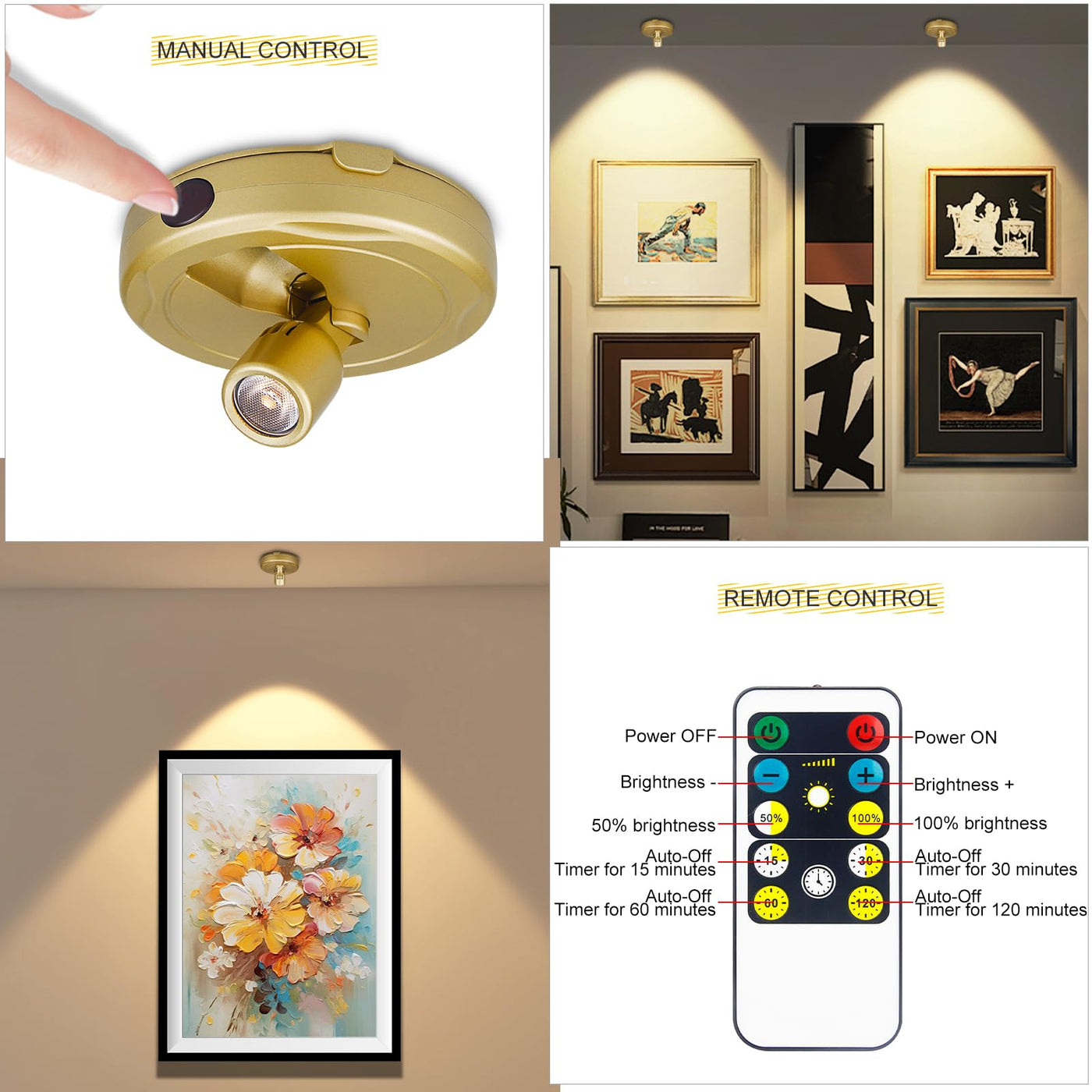 Blisaleiip Battery Led Spotlight With Remote,Wireless Picture Light Painting Light Indoor Uplight Downlight,Led Art Display Accent Light For Wall, Puck Lights For Plants Dartboard Painting Pictures
