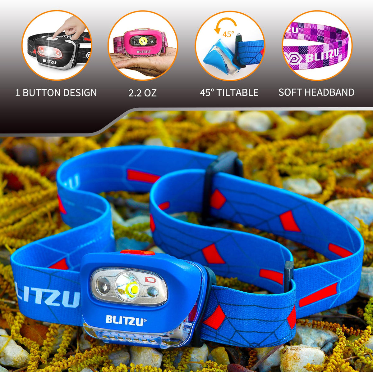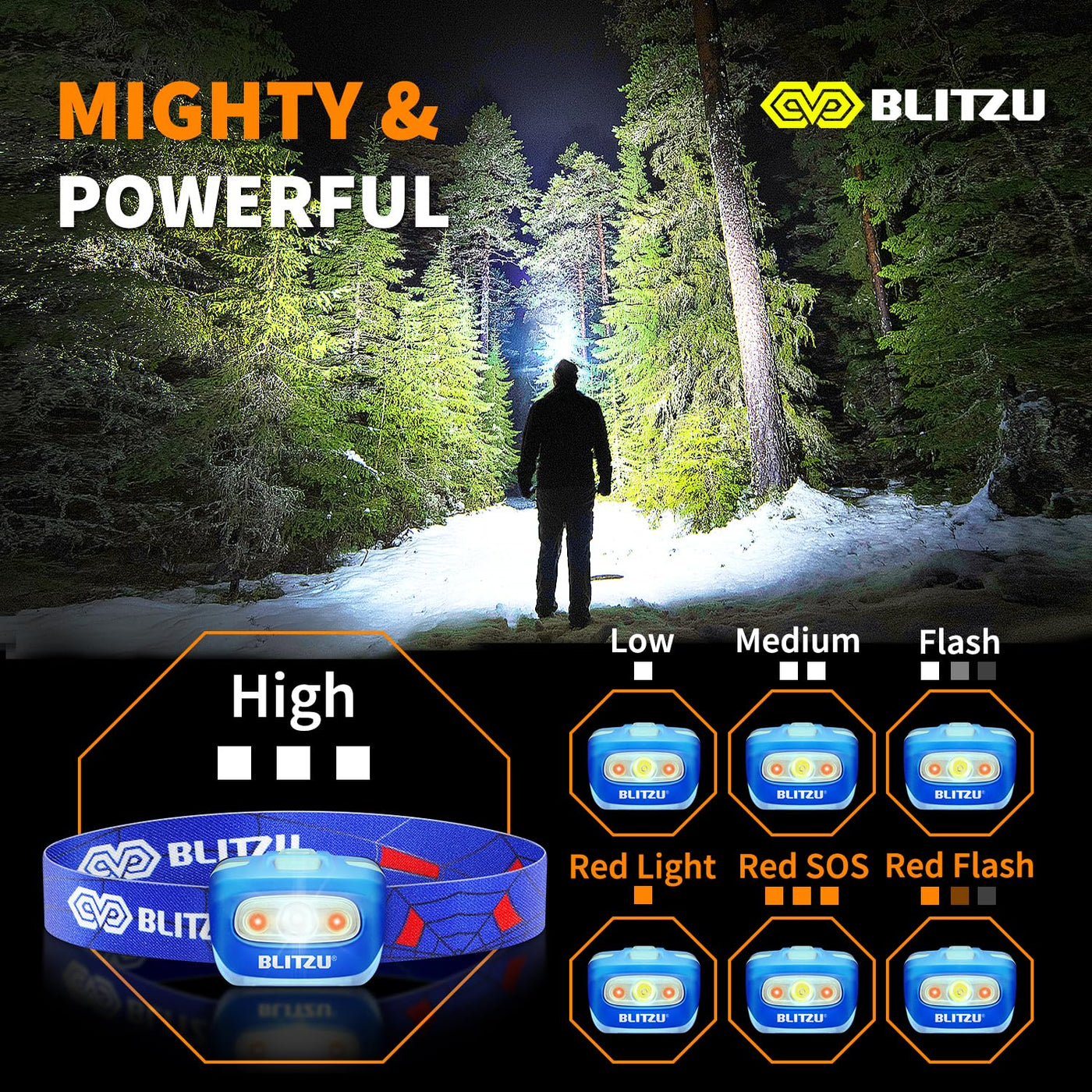 Illuminate any adventure with the BLITZU LED Headlamp Flashlight, perfect for adults and kids. Designed for running, camping, hiking, and more, this versatile headlamp ensures you're equipped for any nighttime activity. Its lightweight, waterproof design and adjustable headband guarantee comfort and durability for outdoor enthusiasts of all ages. Featuring super-bright white light and a red light mode, this headlamp is ideal for night running, trail hiking, or emergency signaling. Whether you're exploring nature, walking at night, or working on a project, the powerful LED technology provides maximum visibility. The included 3 AAA batteries mean it's ready to use right out of the box. This LED headlight flashlight is not only a reliable companion for outdoor activities but also a thoughtful gift for campers, runners, and hikers. Its weather-resistant construction ensures you can rely on it in rain, snow, or challenging environments. Key Features: Versatile Lighting Options: Switch between bright white and red light modes for customized illumination during any activity. Lightweight Comfort: Enjoy extended use without discomfort, thanks to the ergonomic headband design. Weatherproof Performance: Built to withstand rain, snow, and rugged outdoor conditions. Energy-Efficient LEDs: Experience brighter light and longer-lasting battery life, perfect for extended adventures. Ready for Action: Includes 3 AAA batteries, so you can start using your headlamp immediately. Upgrade your gear with the BLITZU LED Headlamp Flashlight, the ultimate choice for running headlamps, camping essentials, and hiking accessories. Whether you're a seasoned adventurer or just need a reliable light for everyday use, this headlamp delivers unmatched performance and reliability.