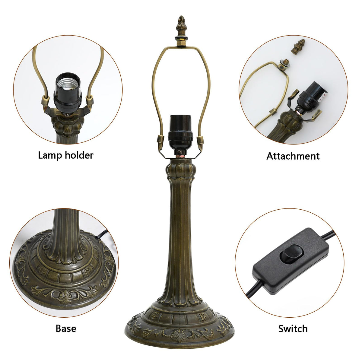 Q: What materials are used in the construction of the lamp?A: The lamp features a handmade stained glass lampshade crafted from carefully cut pieces of stained glass wrapped in copper foil, and a high-quality aluminum alloy base with a vintage antique brass finish.