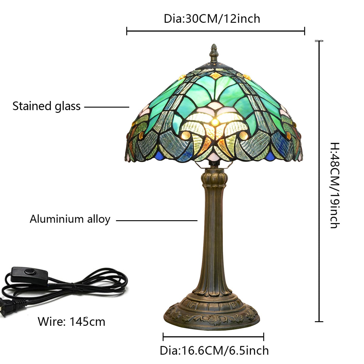 Tiffany Lamp Green Liaison Style Stained Glass Table Lamp W12H18 Inch Antique Table Lamp Metal Base Desk Reading Light For Living Room Bedroom Bar Art Craft