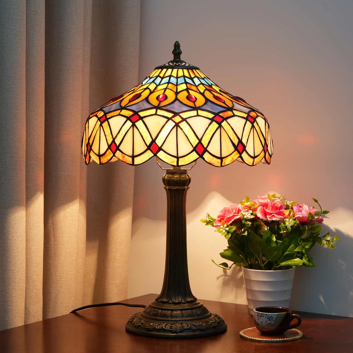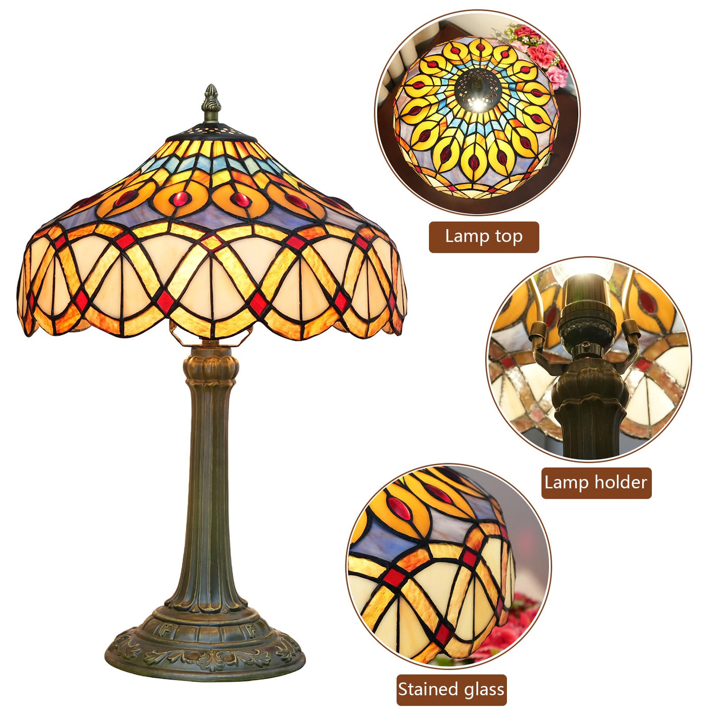 Tiffany Lamp Yellow Peacock Tail Style Stained Glass Table Lamp Vintage Handmade Desk Reading Lamp For Living Room Bedroom Wedding Room Home Office Antique Decorative Light