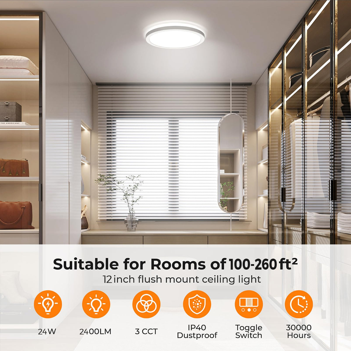 The BLNAN 12 Inch 24W LED Flush Mount Ceiling Light is designed to provide efficient and versatile lighting solutions for various spaces in your home. With its ultra-thin design and multiple color temperature options, this ceiling light is perfect for enhancing the ambiance of any room.