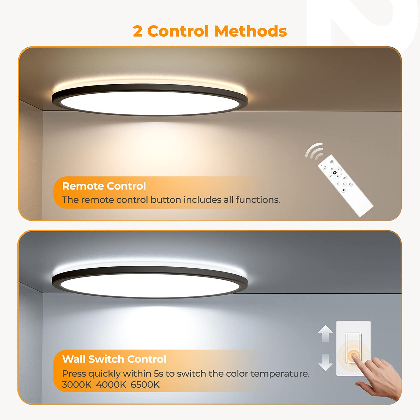 Blnan Surface Mount Wire Led Ceiling Light Fixture, Great For Bedroom, Living Room, Kitchen, Dining Room, Laundry Room, Home Office, Study Room, Hallway, Etc. Modern Look Round, Black Frame Slim Panel Flush Ceiling Light. The Options To Adjust Brightness And Warmth. Use Remote To Color Range 3000K To 6500K And Change The Brightness. More Function 30 Second Delay Turn Off. Memory Function Easy To Install And Great With Its Low Profile. Has A Hanging Wire, So You Can Hang The Light Fixture While Doing The Electrical Connections. Includes Hardware, Including Screws For A Ceiling Box And A Couple Of Screws With Anchors. Also Has Wiring Caps. Parameters Size: Diameter 15.35 Inch Power Consumption: 36W Luminous Flux: 3600 Lumens Input Voltage: 120V Material: Plastic Waterproof Rating: Ip40 Energy Efficiency:> 90% Color Rendering Index (Cri): 90 Color Temperature: 3000K-6500K Working Life: 30,000 Hours Control Merhods: Remote Control And Wall Switch Installation Methods: Ceiling Installation And Wall Installation Package Round Ceiling Light Manual Remote Control (Batteries Not Included) Hardware Installation Accessories