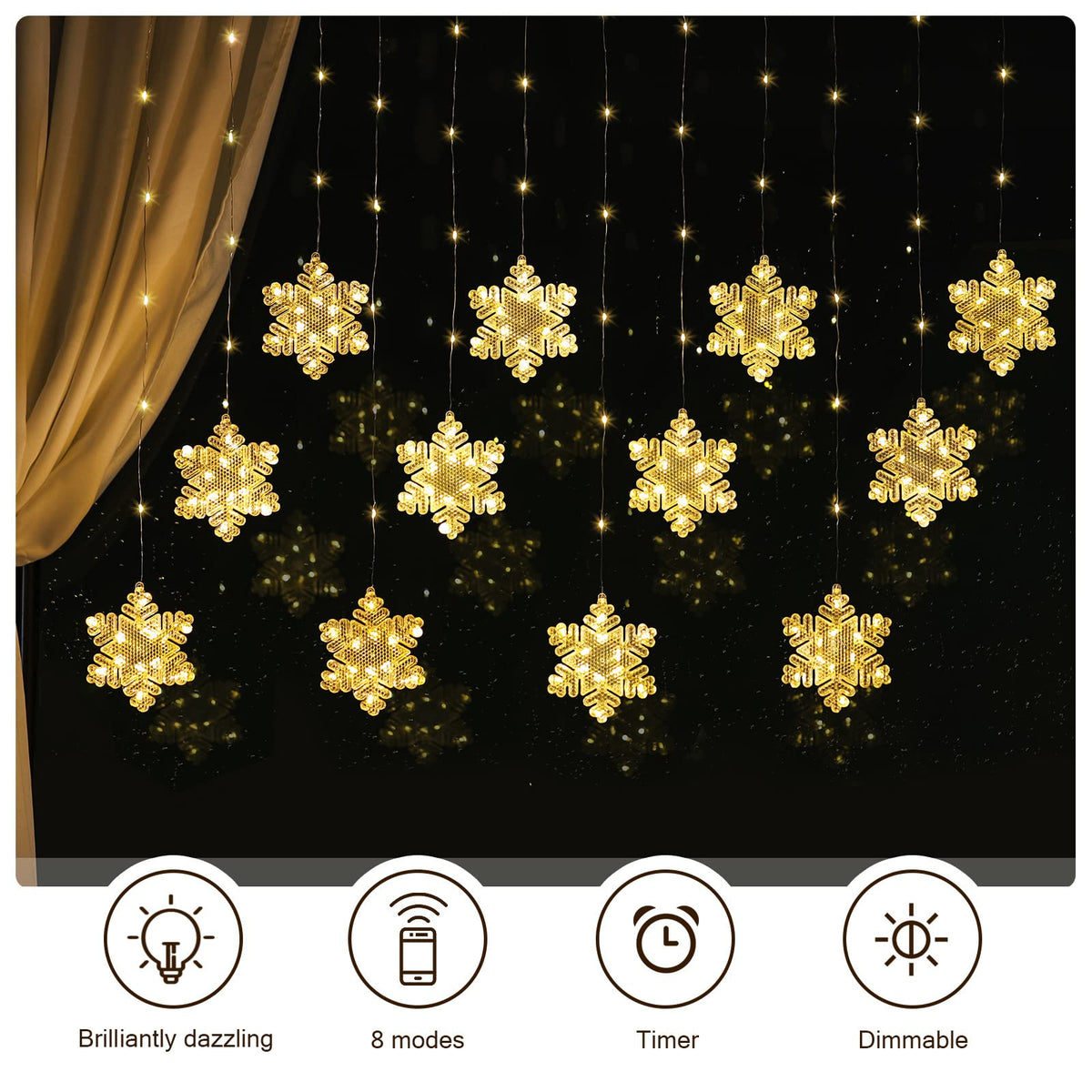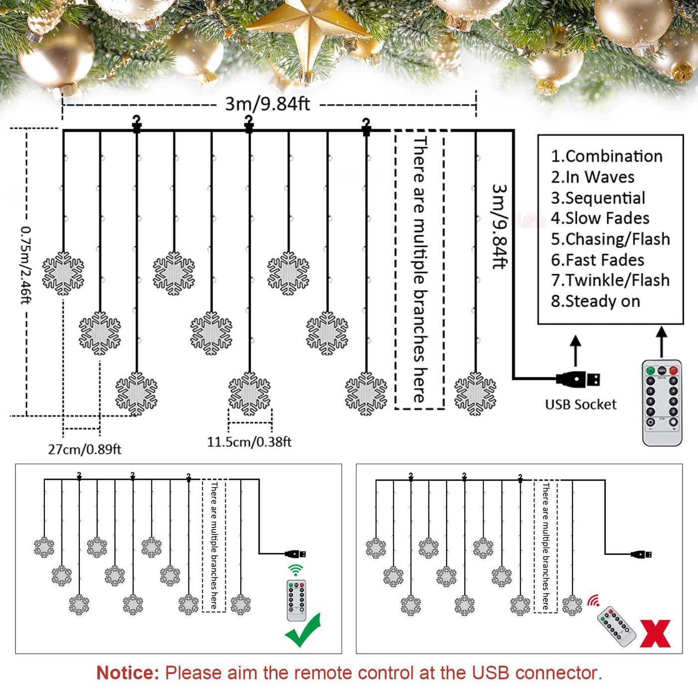 Bloomwin Window Lights Christmas Decor 10Ft 12 Snowflakes Icicle Lights Usb Christmas Curtain Lights For Bedroom Indoor Wall Winter Decorations For Home Church Wedding Birthday, 8 Modes, Warm White