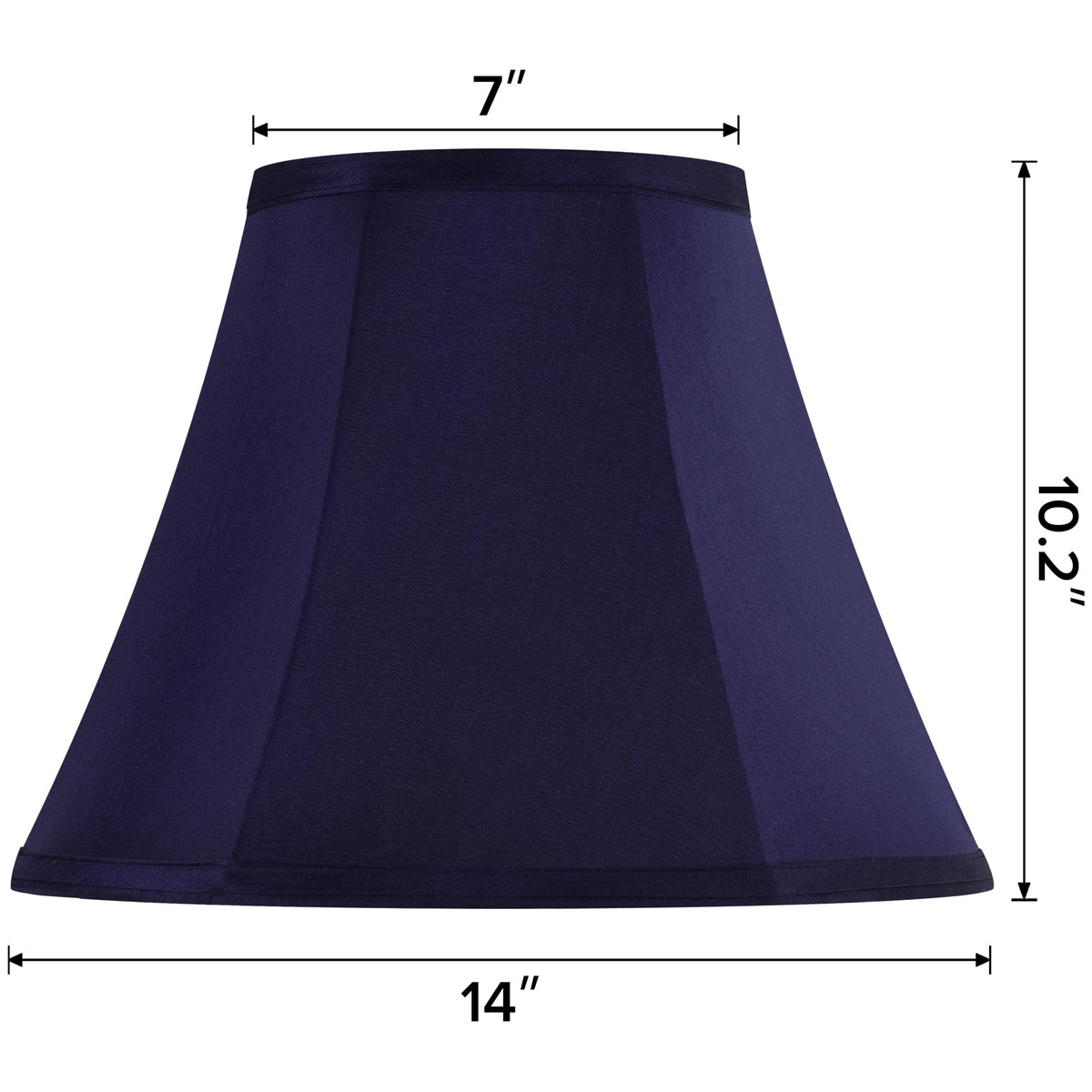 Q: What are the dimensions of the Blue Bell Lamp Shades?A: The Blue Bell Lamp Shades have a top diameter of 7 inches, a bottom diameter of 14 inches, and a height of 10.2 inches.